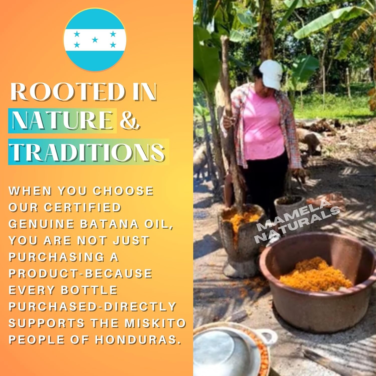SUPPLYING AUTHENTIC BATANA OIL SINCE 2018: Our 100% Pure and Organic Batana oil from Honduras is Sourced and Imported Directly From our Family Farm in La Moskitia Honduras, where this hair oil has been used for centuries by the Miskito people promoting naturally beautiful hair ! Our direct ethical sourcing delivers a raw, and unrefined product with potent, nutrient-dense properties giving results that only Genuine Batana oil – Aceite de Batana – can offer.