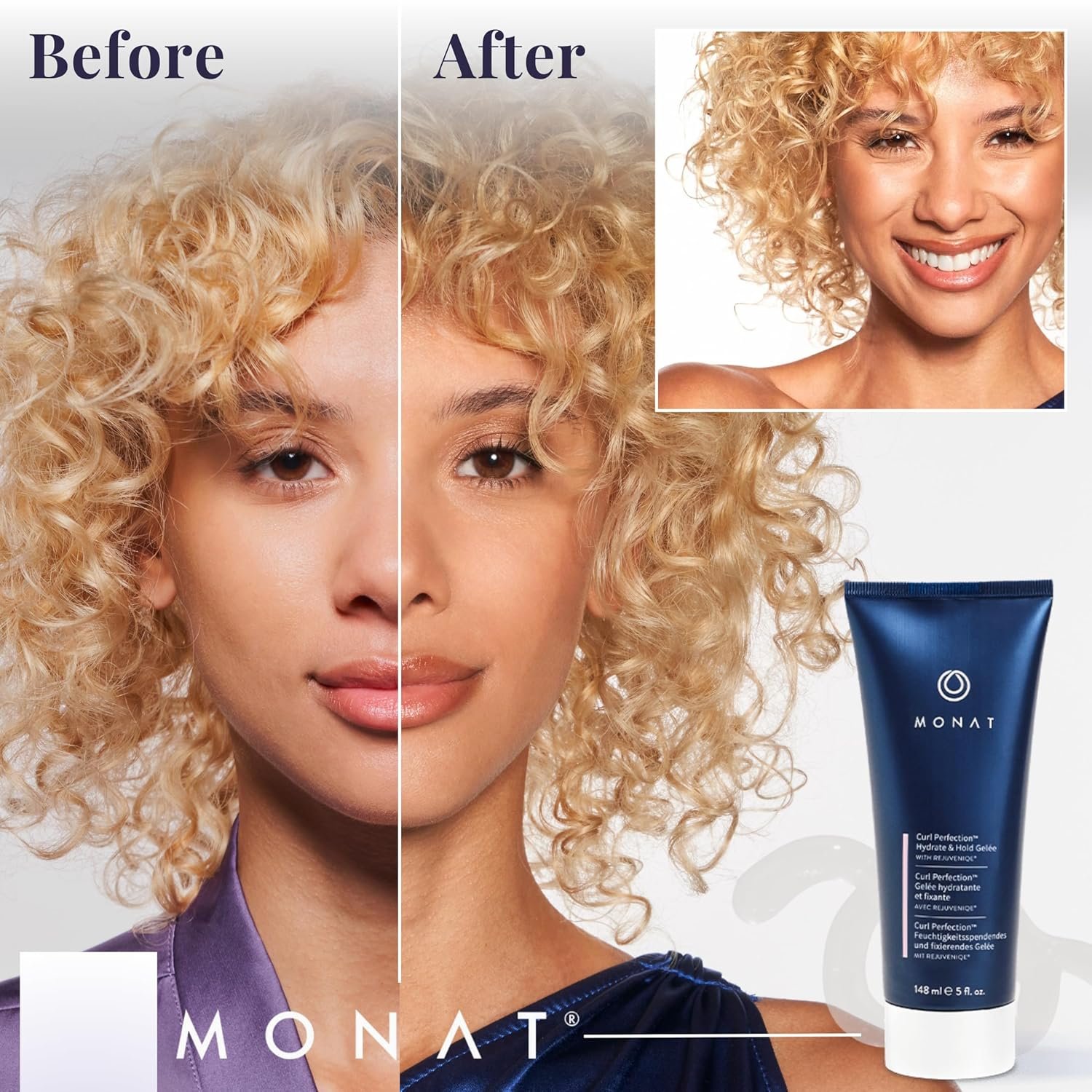 POWERFUL CURL-SUPPORTING BENEFITS: MONAT Curl Perfection️ Gelée delivers deep hydration that protects your curls from dryness while defending against humidity. It smooths the hair cuticle, fights frizz, and promotes consistent curl formation without stiffness. With its long-lasting memory, it ensures defined, shiny curls that remain soft and manageable all day.