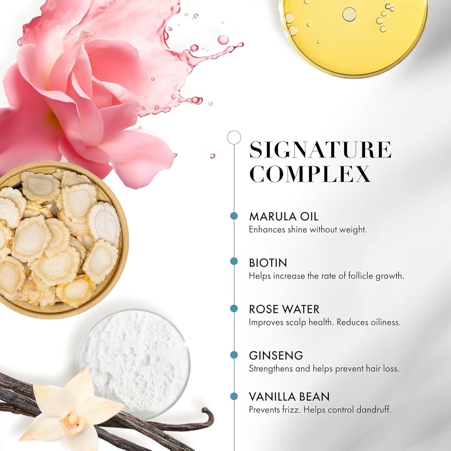 Lasting Nourishment & Shine – Signature Complex with marula oil and coconut oil delivers nutrients and antioxidants that soften, smooth, and add radiance to hair.