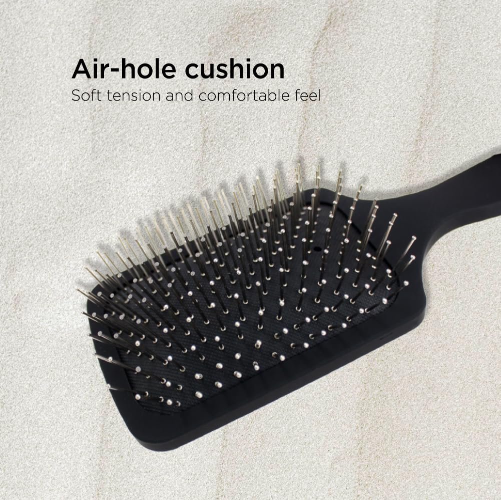 [Scalp Massage]: Cushioned base with metal bristles provides a soothing scalp massage, promoting relaxation and blood circulation.
