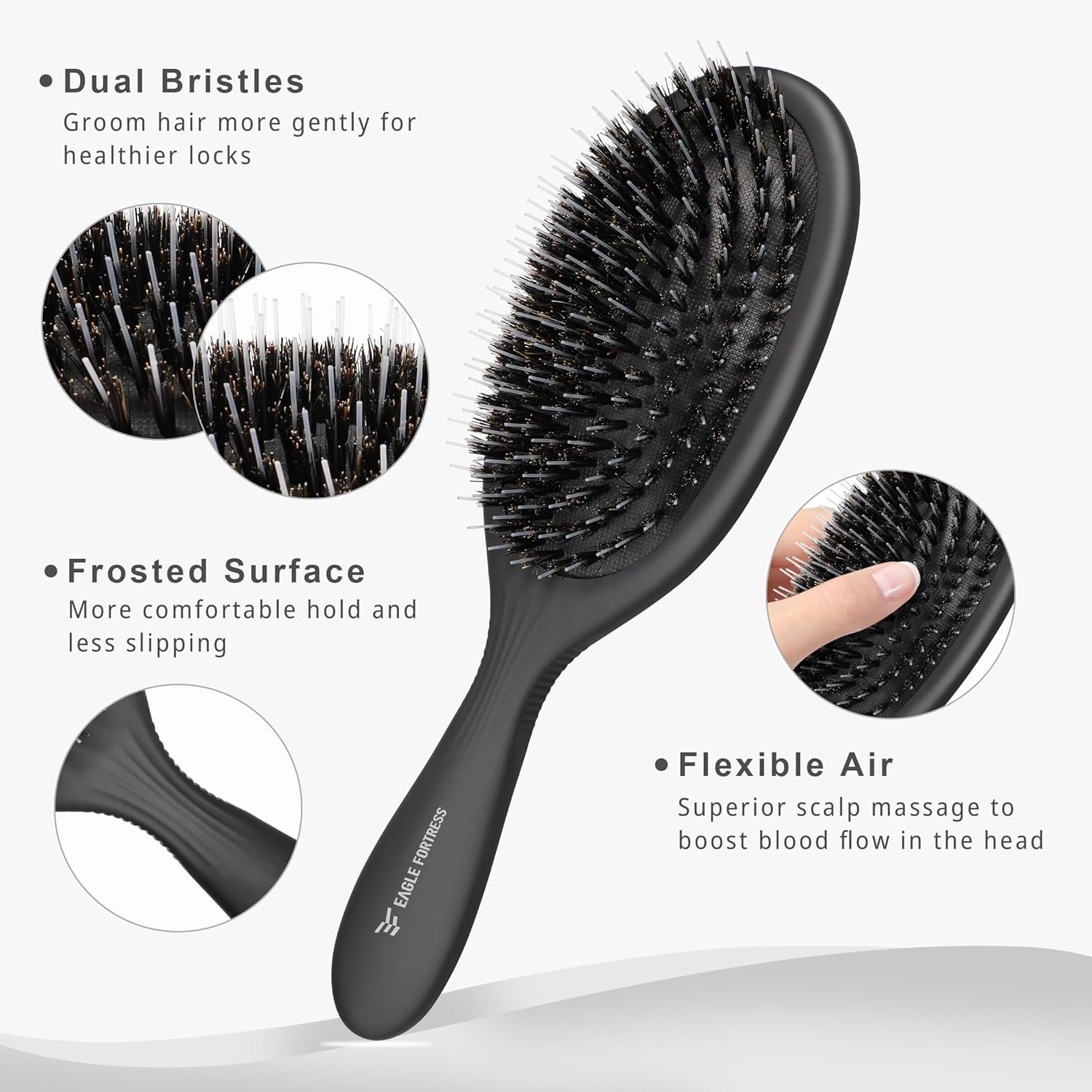 Effortless Detangling with Mixed Bristles – This boar bristle hair brush is designed with a blend of natural boar bristles and flexible nylon bristles. The polished tips glide smoothly through thick, long, or straight hair, making it the perfect hair brush for women detangling without pulling or scratching the scalp.