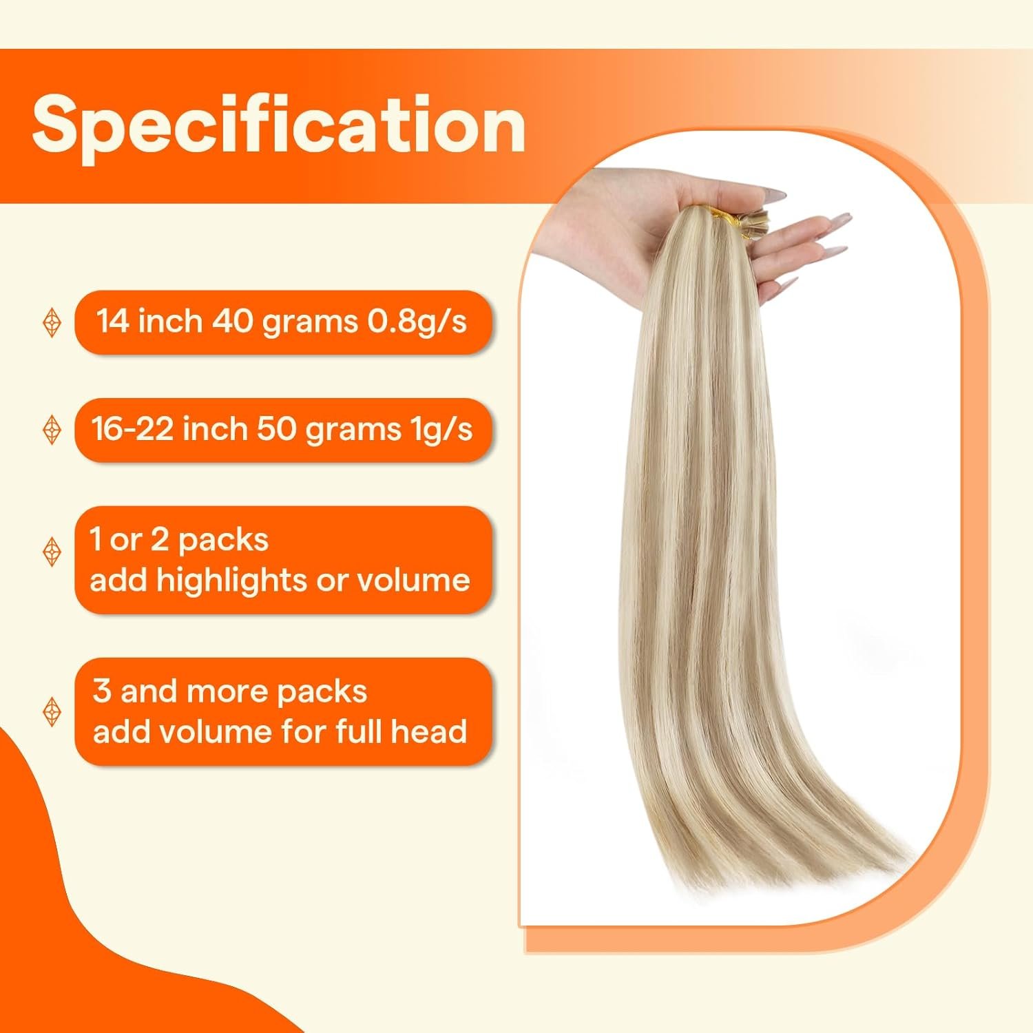 Specifications: Full Shine u tip hair extensions 14 inch total 50 strands 40 grams, 16-22 inch total 50 strands 50 grams; 1-2 packs are enough to create highlights, while 2 or more packs can add volume or length