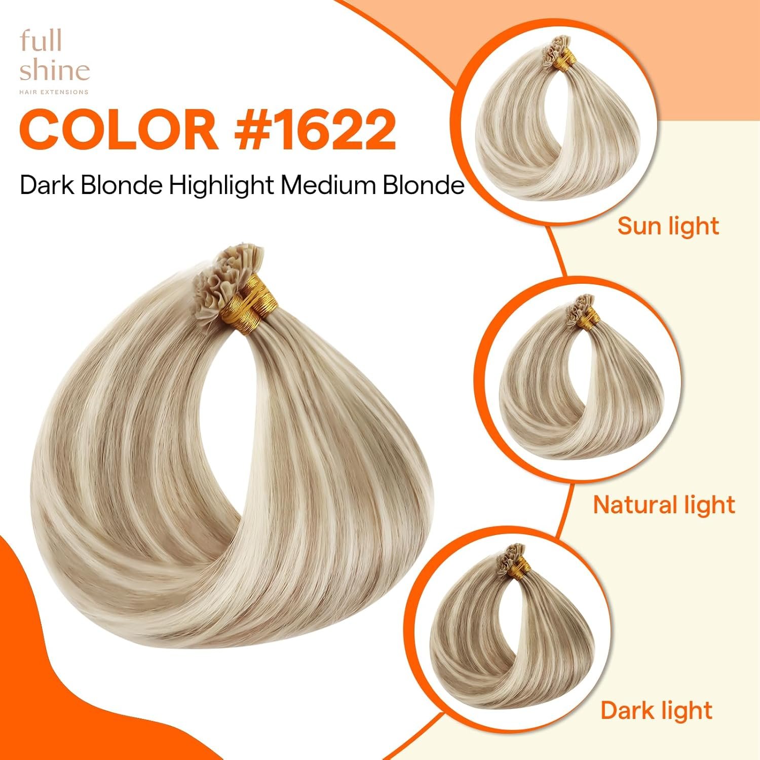 Real Human Hair: Full Shine u tip hair extensions are made of real human hair, can be heat styled and dyed in darker colors, allowing you to customize your look to match your personal style