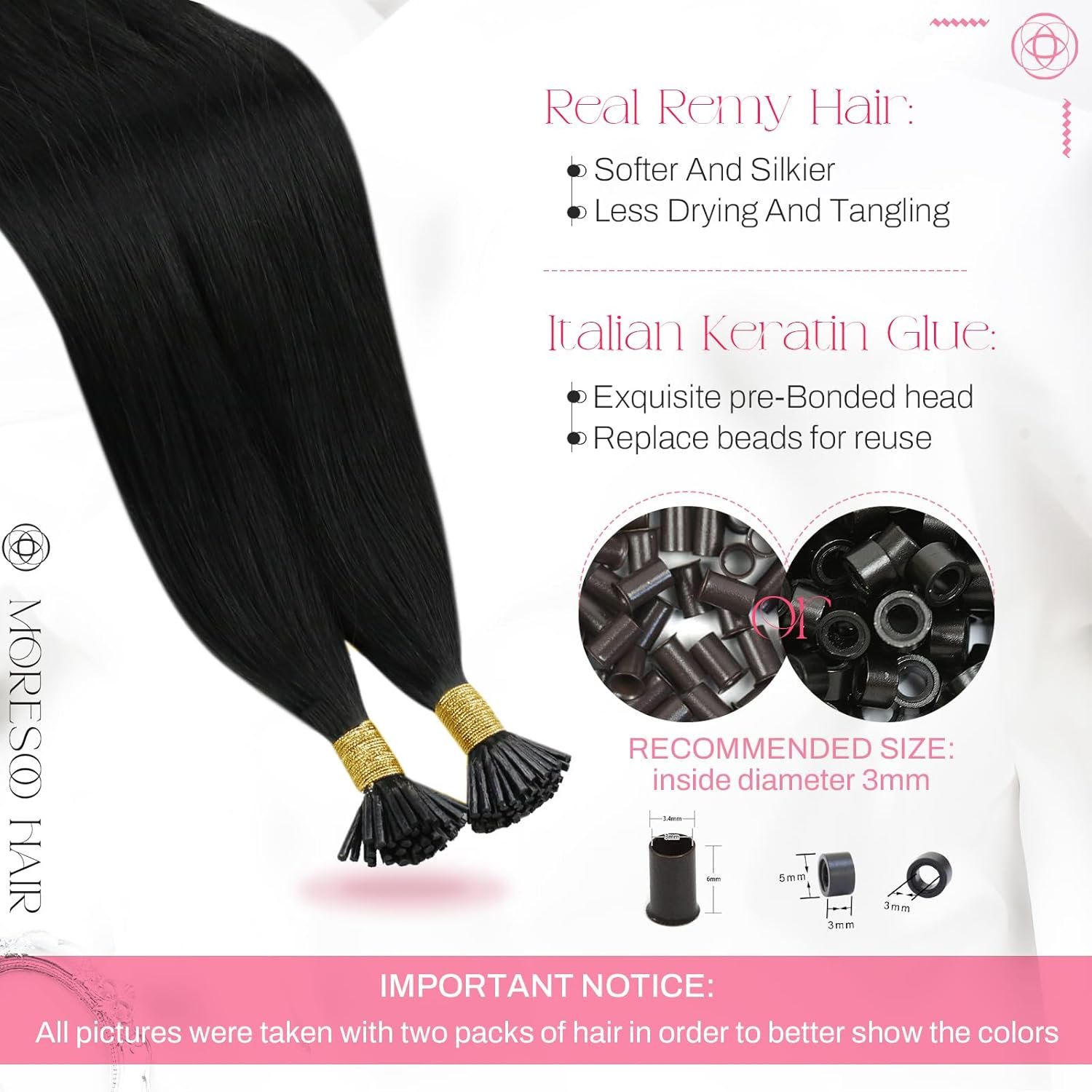 Remy human hair: Moresoo Itip human hair extension is made of high quality human hair; no tangles, no shedding, no split ends in our hair; moresoo is committed to providing you with a better shopping experience