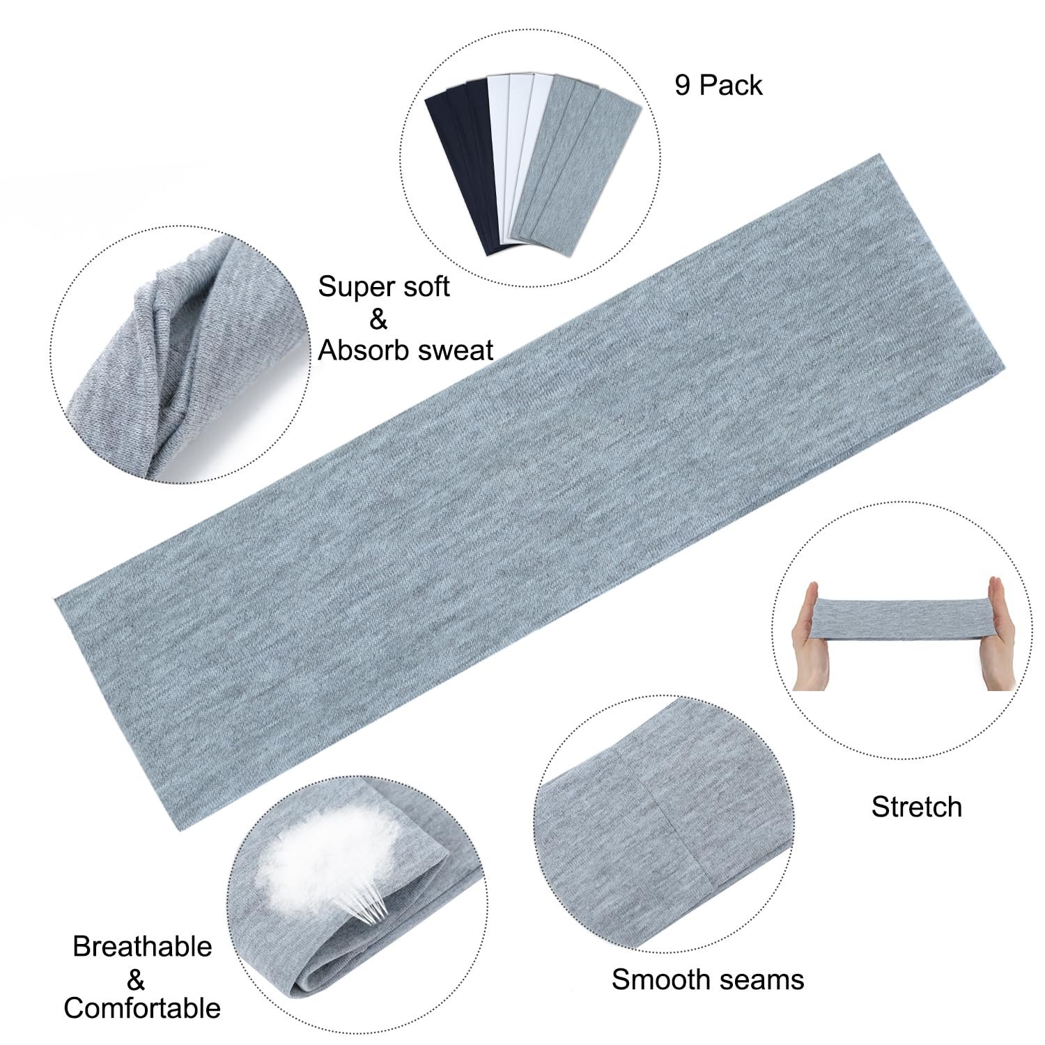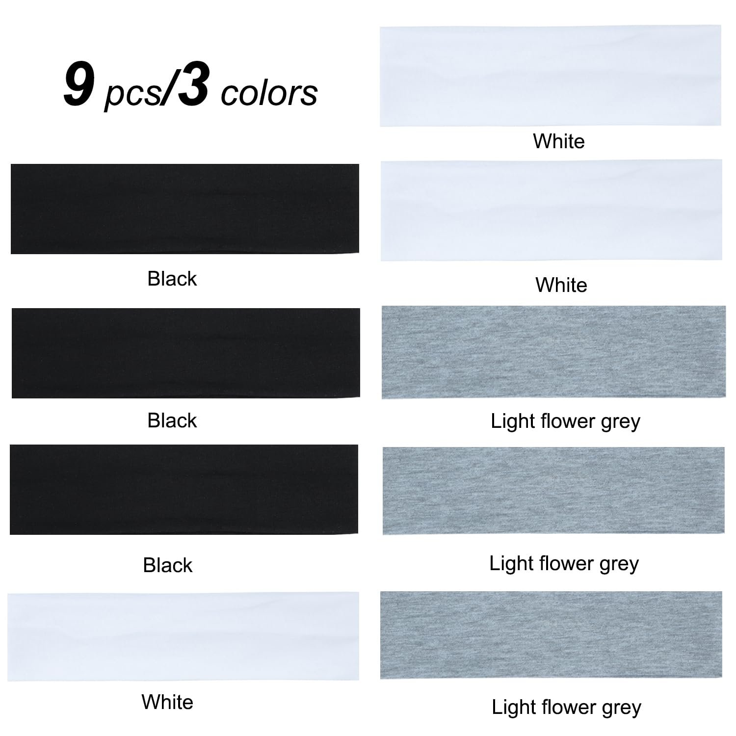 【Package Includes】9pcs headbands in one set (3pcs black,3pcs white,3pcs light flower grey)