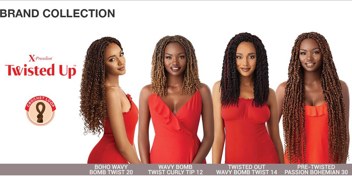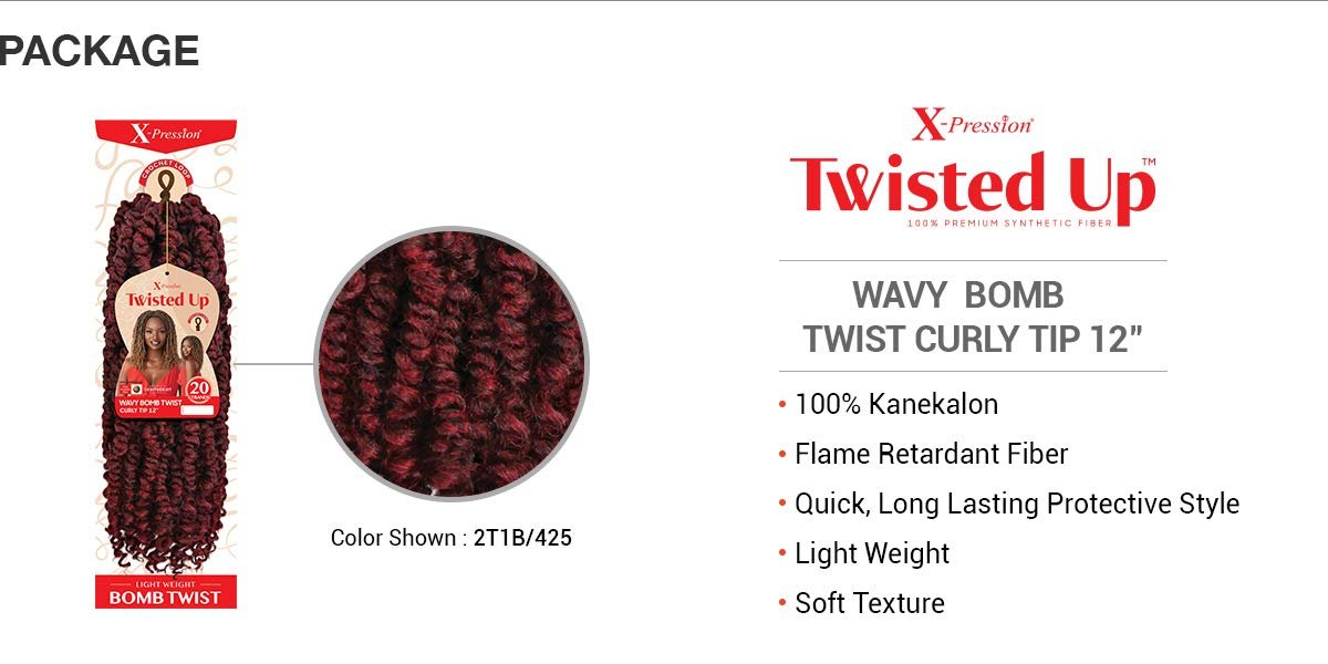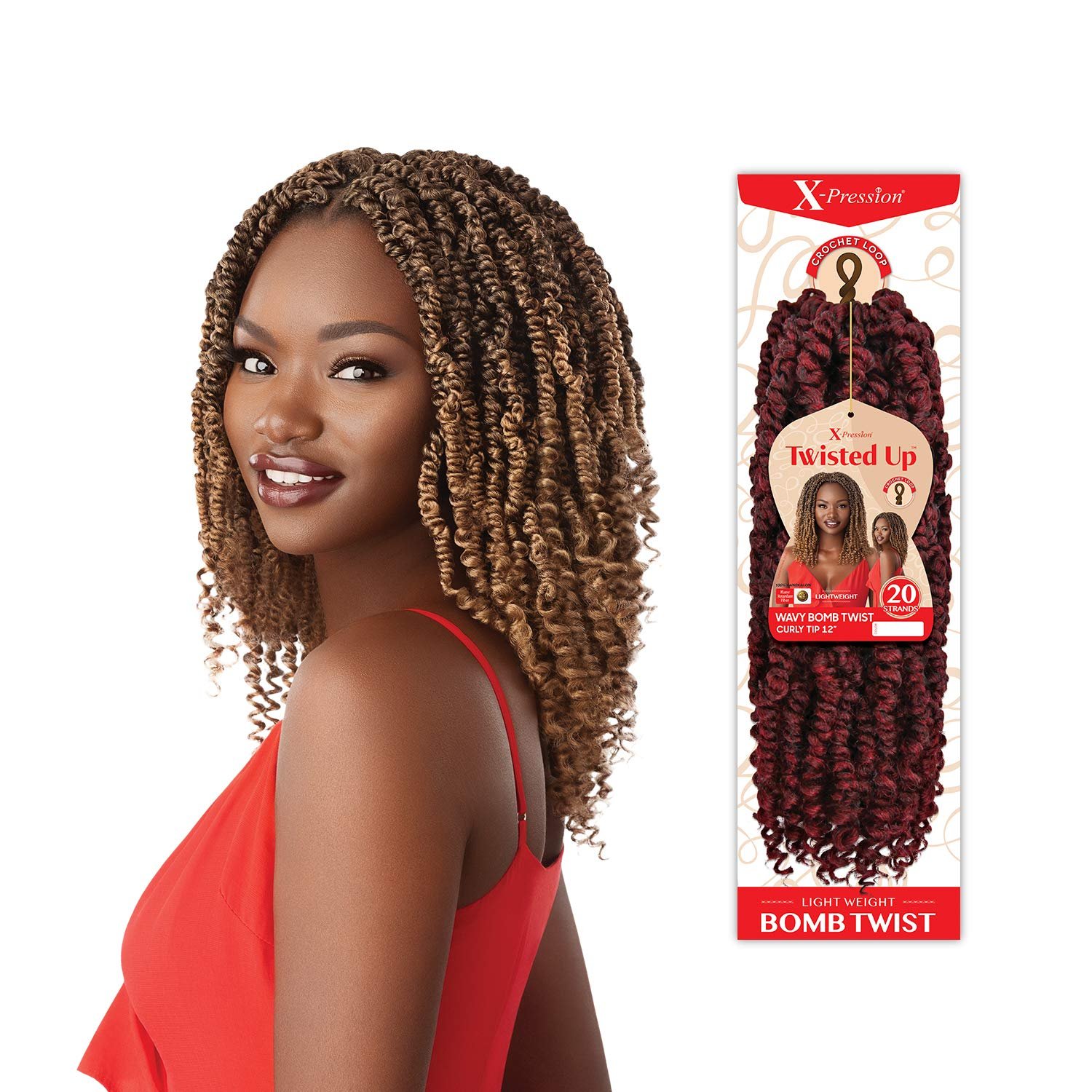 Outre X-Pression Twist Up Crochet Braid Medium Short Length Yaki Twist Style Synthetic Hair – WAVY BOMB TWIST CURLY TIP 12″*Please read the product features for more information