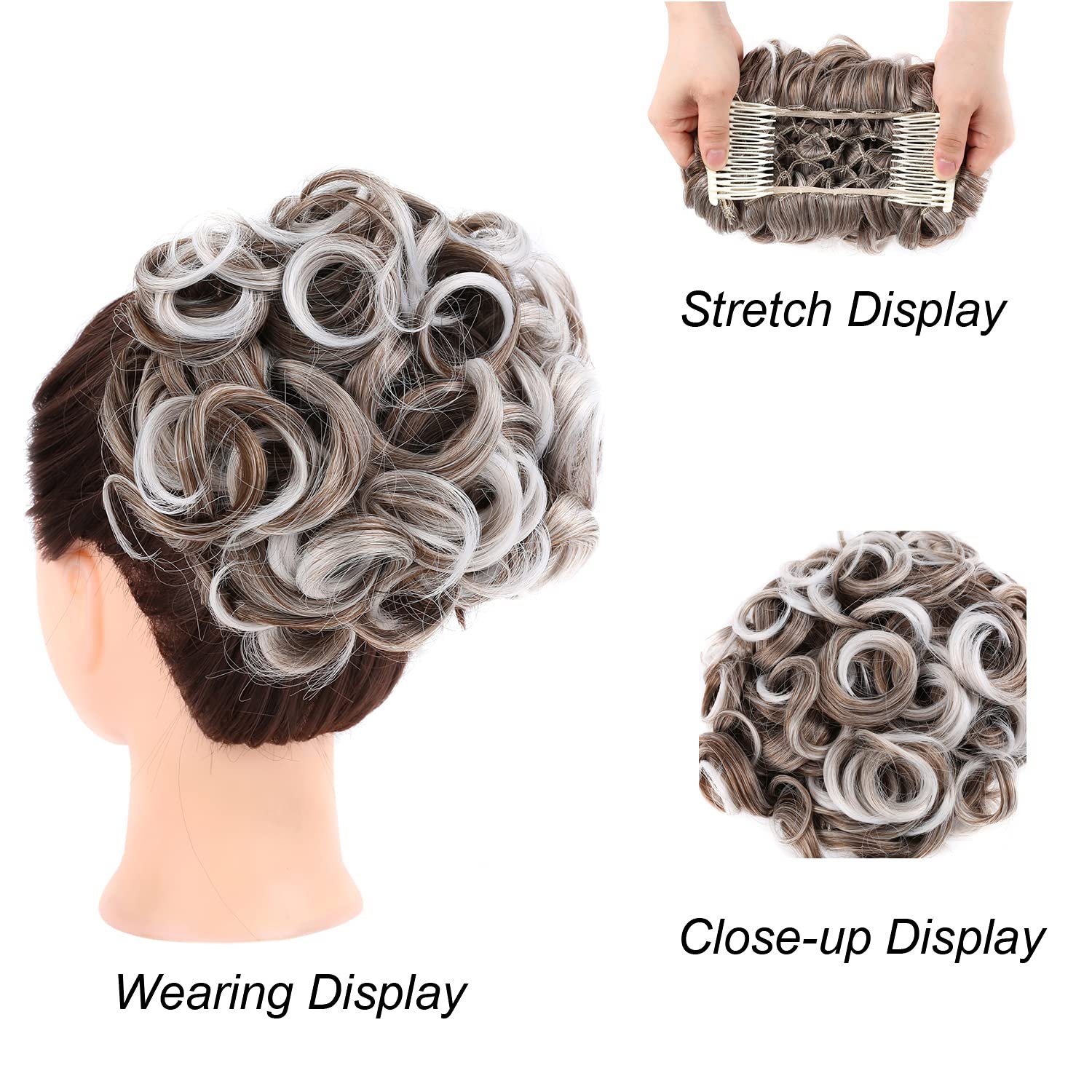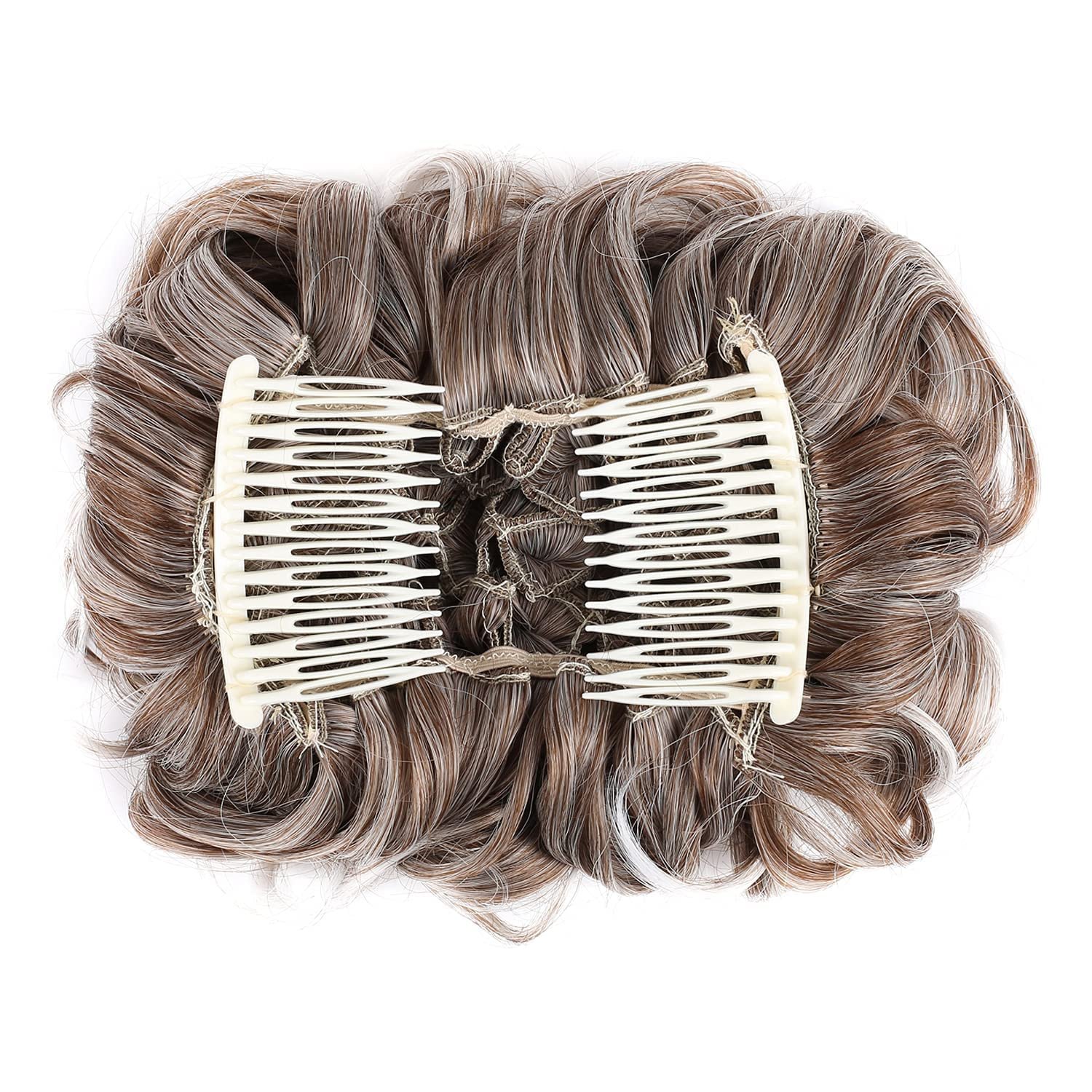 【Material】: The Elaine combs curly bun hairpiece is made of the high-quality heat-resistant synthetic fiber, which looks and feels like the real human hair. Natural, thick and soft, more fullness to your updo.