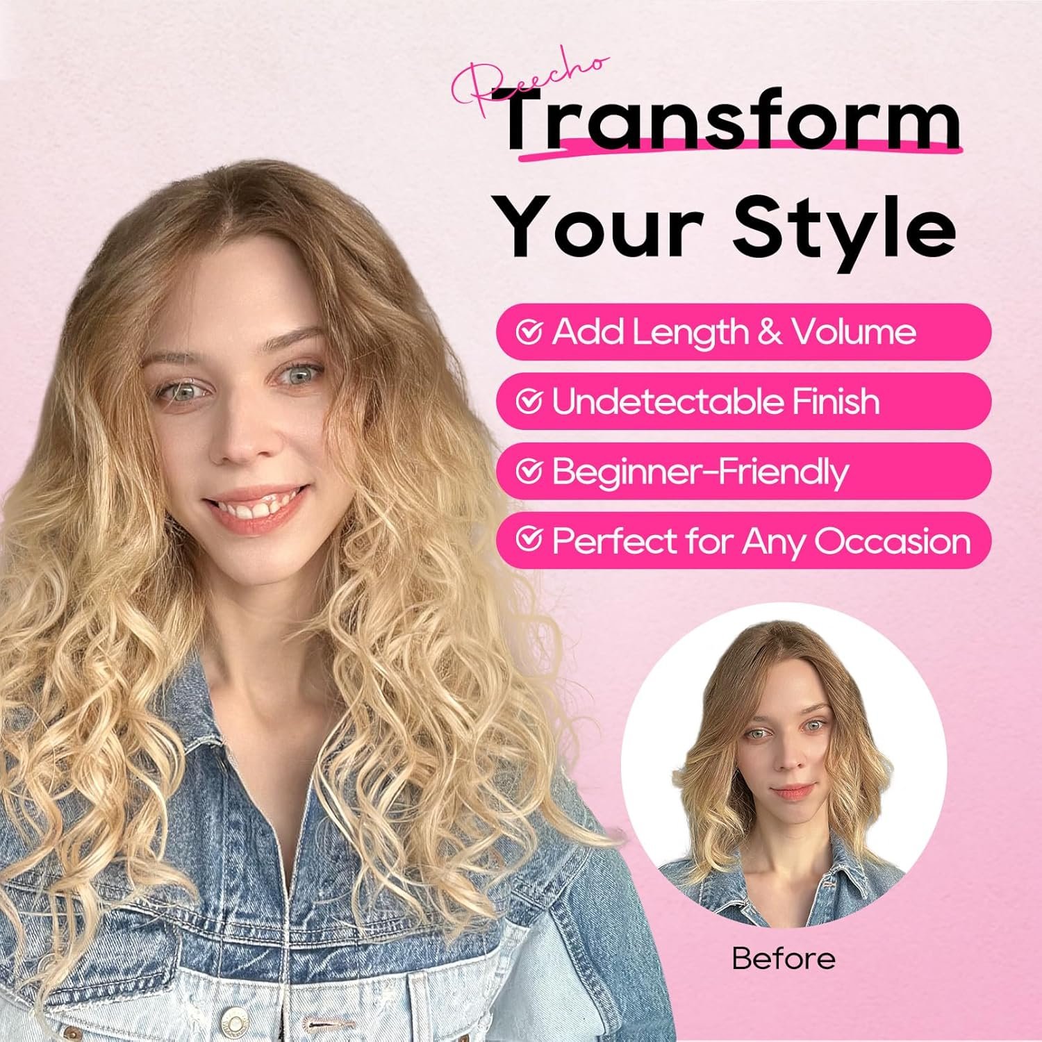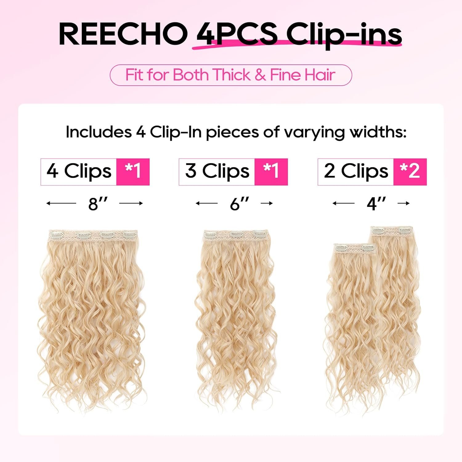 [Natural Beautiful Curly Hair] Create a luxury curly hair look with REECHO 4PCS clip-in hair extensions. Designed with seamless wefts that lay flat on your scalp, offering an undetectable, flawless finish. The natural waves blend effortlessly with your own hair, giving you a seamless beautiful curly appearance