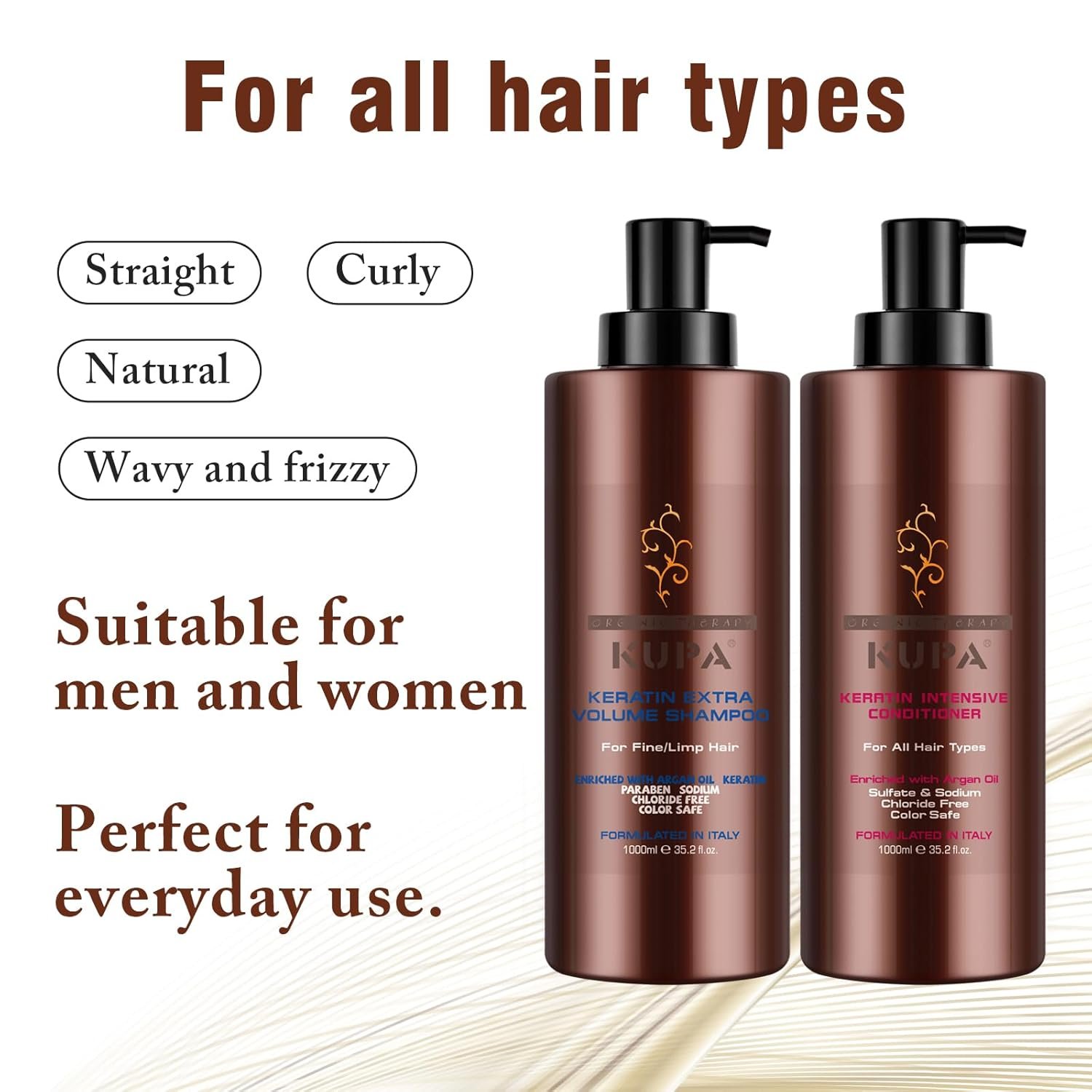 organic argan oil ,jojoba oil moisturing shampoo and conditoner suitable for sensitive scalp and skin and EveryDay use on normal to dry hair.
