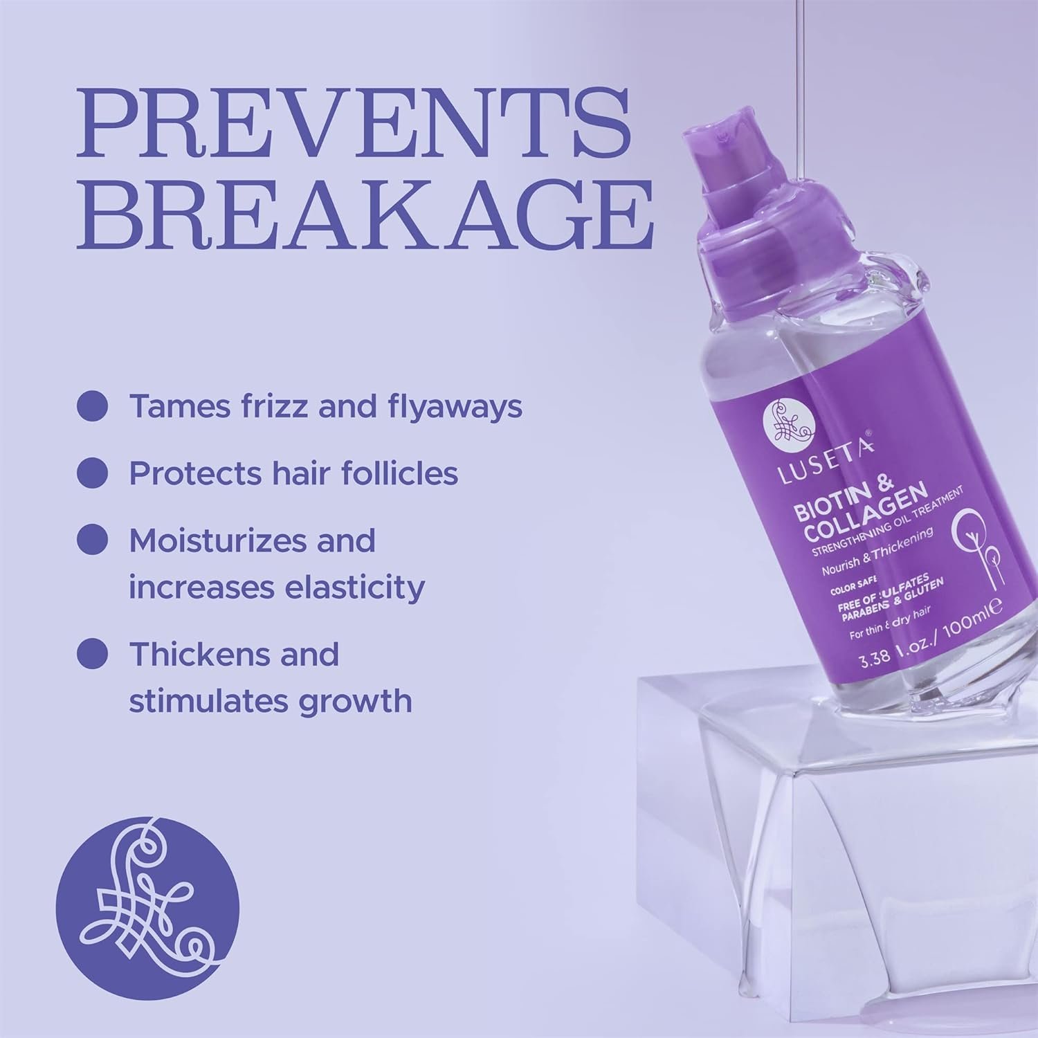 Our biotin and collagen oil treatment for hair is color safe, free of sulfates, paraben. Combine with LUSETA biotin shampoo and conditioner set for better result.