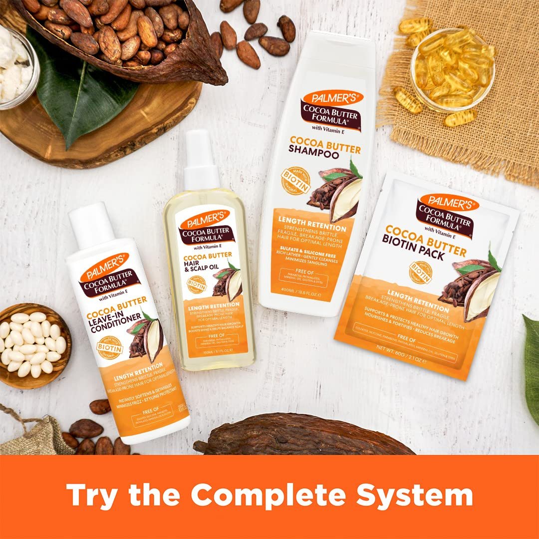 Palmer’s Cocoa Butter Formula + Biotin hair care system is the ultimate solution to strengthen, lengthen and protect natural hair twists. One of the most crucial components of wearing your hair in a hair twist style is maintaining the health of your scalp. Cocoa butter and biotin products are ideal for scalp health to nourish hair at the root, ensuring strands are strong from top to tip. Enrich your two strand twists or other medium-length hair twist styles by adding Palmer’s Cocoa Butter Formula Length Retention Hair & Scalp Oil into your hair care regimen. This oil, naturally infused with the powers of Cocoa Butter and Biotin, surrounds fragile hair with a strong protectant and keeps your scalp healthy so your hair can grow to its optimal length without breakage or split ends. For healthier looking hair, use the entire Palmer’s Cocoa Butter Formula Length Retention system.