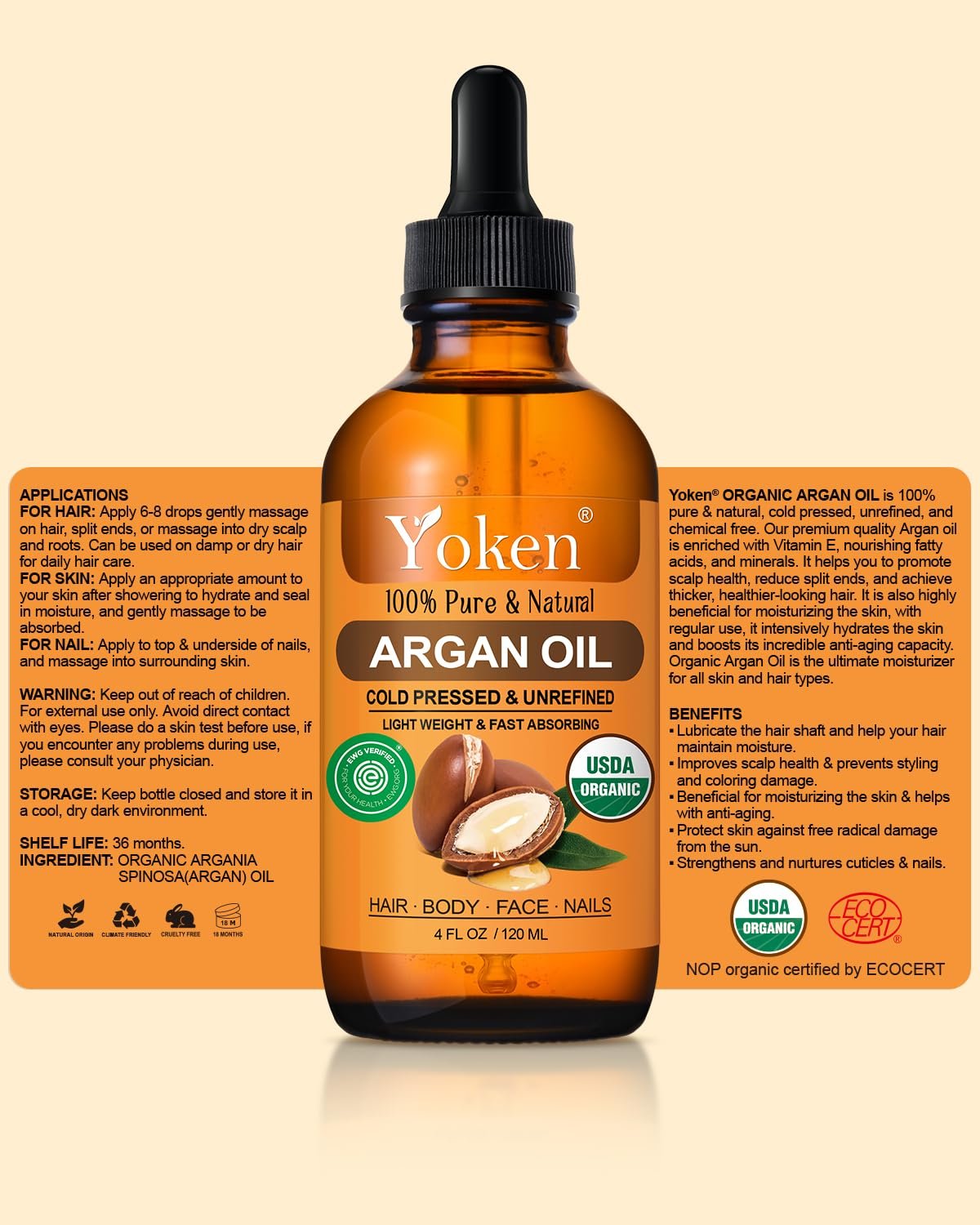 100% Natural Argan Oil: Comes From Natural Argan Nuts, Gentle 100% Cold Pressed Pure and Impurity-Free, Not Diluted, Non-Gmo, No Additives, No Fragrance, Chemical Free, Alcohol Free, Hexane Free.Bring Nature To The Hair, Face And Skin,Enjoy A Natural Hair And Skin Care Journey.