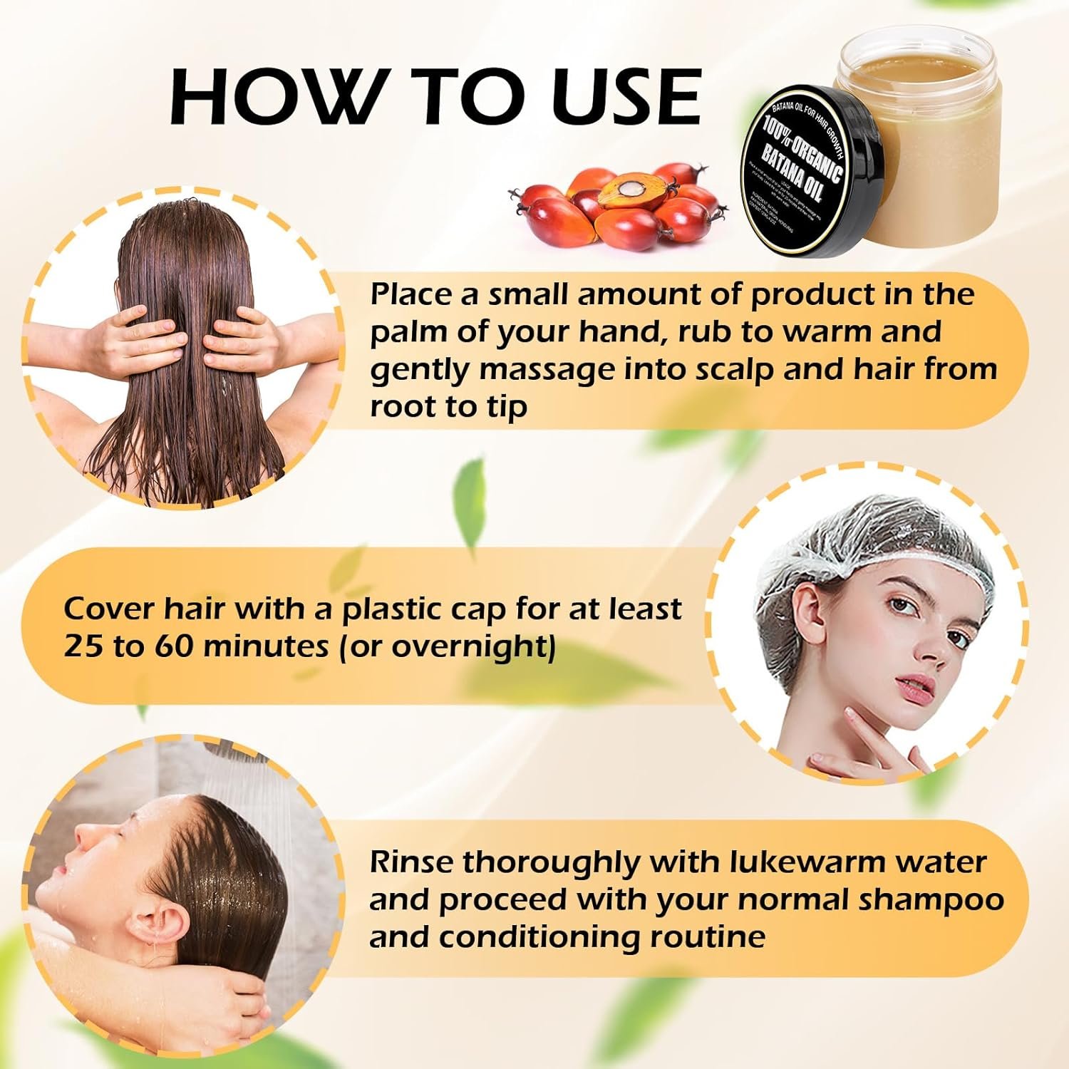 🌴Creamy Texture for Easy Application: Our Batana Oil comes in a creamy texture that makes it incredibly easy to apply. Simply scoop out a small amount and work it through your hair, focusing on the ends and areas that need extra nourishment. The creamy formula spreads evenly, ensuring every strand gets the care it deserves.