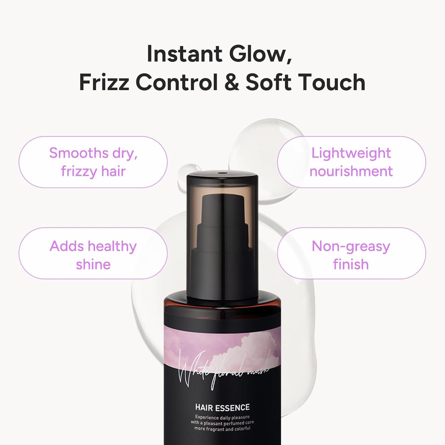 Weightless Shine & Frizz Control – Smooths and softens without heaviness using a blend of dimethicone and cyclopentasiloxane. Instantly tames flyaways and adds a healthy glow, making it ideal for daily leave-in use or finishing touch after styling.