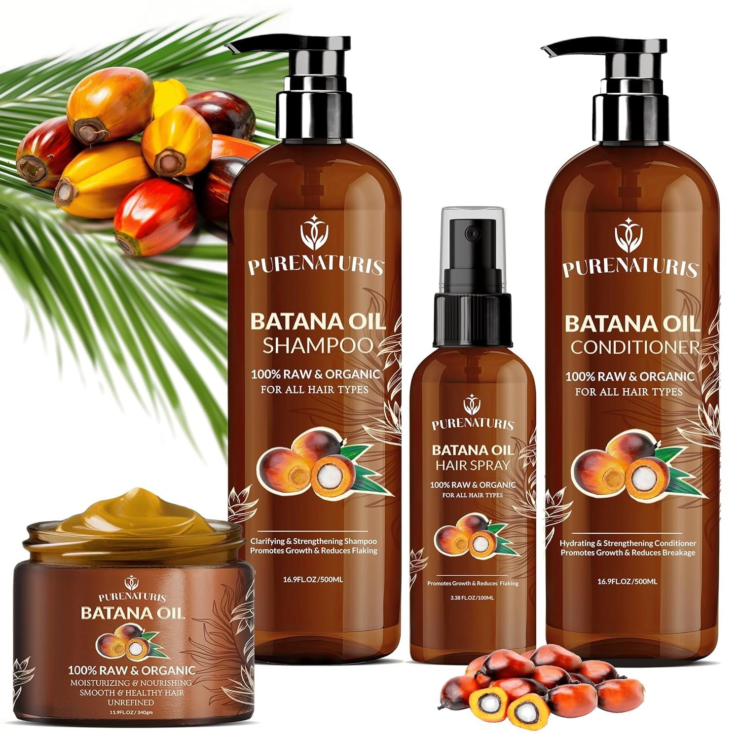 ✅Complete Hair Care System – Transform your hair with our all-in-one Batana Oil Hair Growth Kit, including shampoo, conditioner, hair mask, and leave-in spray designed to promote growth, reduce breakage, and deeply nourish.
