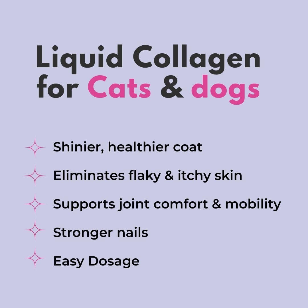 Our easy-to-use liquid collagen drops for dogs and cats are designed to fit seamlessly into your routine. Whether your goal is to support a cat skin and coat supplement or a dog joint support supplement, this all-in-one formula is the smart choice.