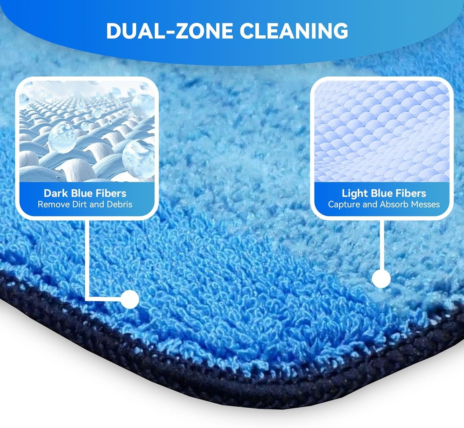 【Dual Zone Cleaning】Dark blue fibers remove dirt and debris, light blue fibers capture and absorb dirty water and small particles