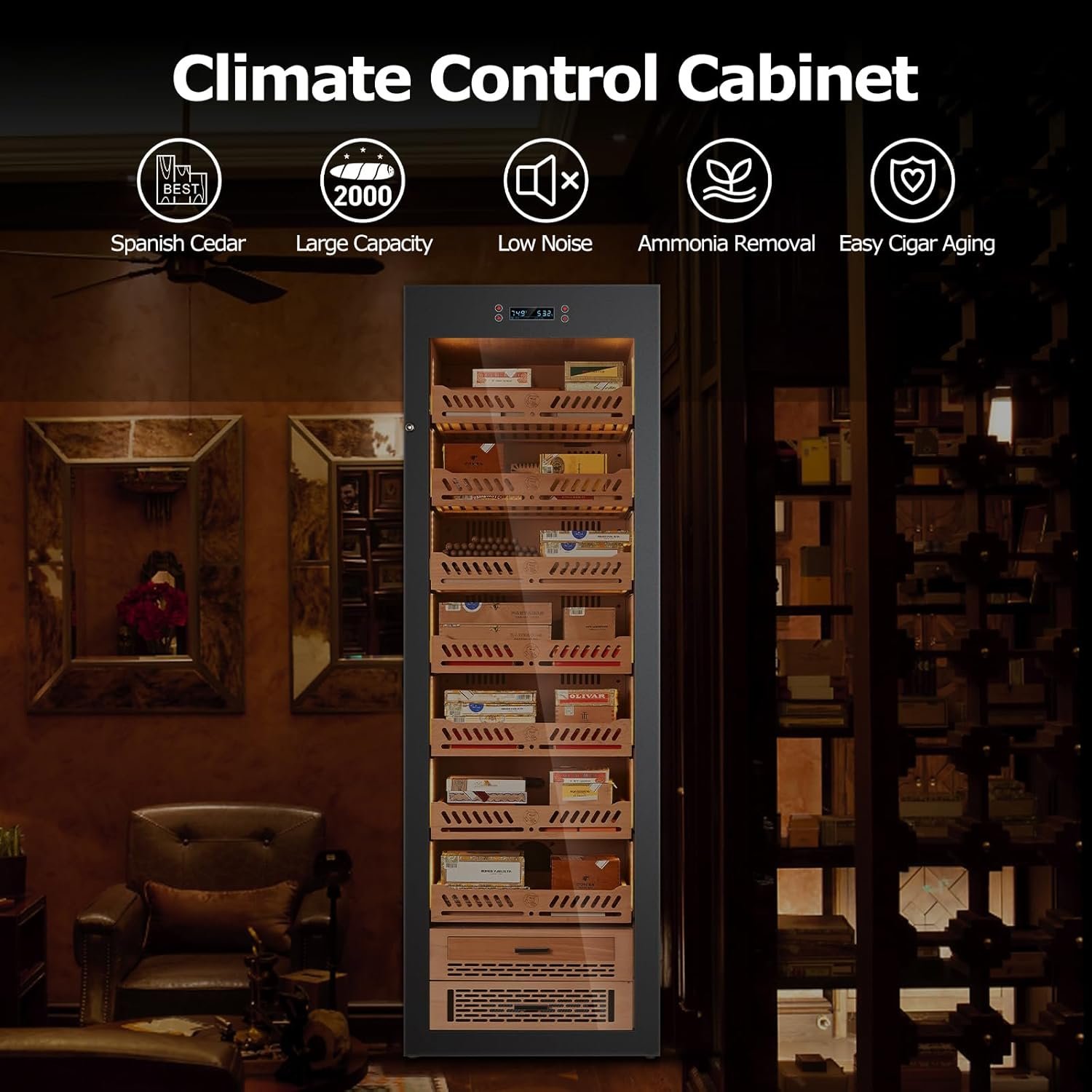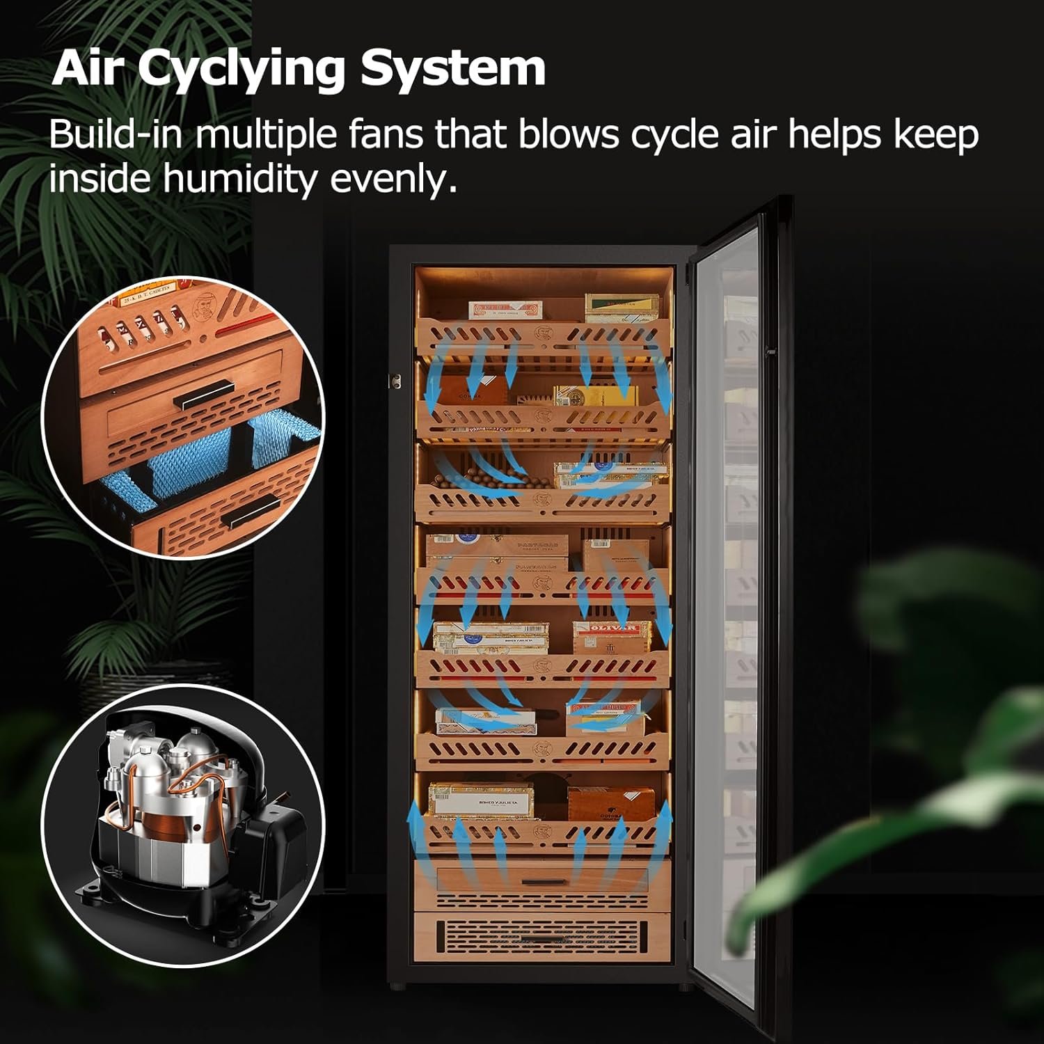 🚬DIMENSION: 23.4″L x 26.8″W x 70.8″H; Weight: 206Lb ; Capacity: 448L; Cigar Storage: 1700+ ;