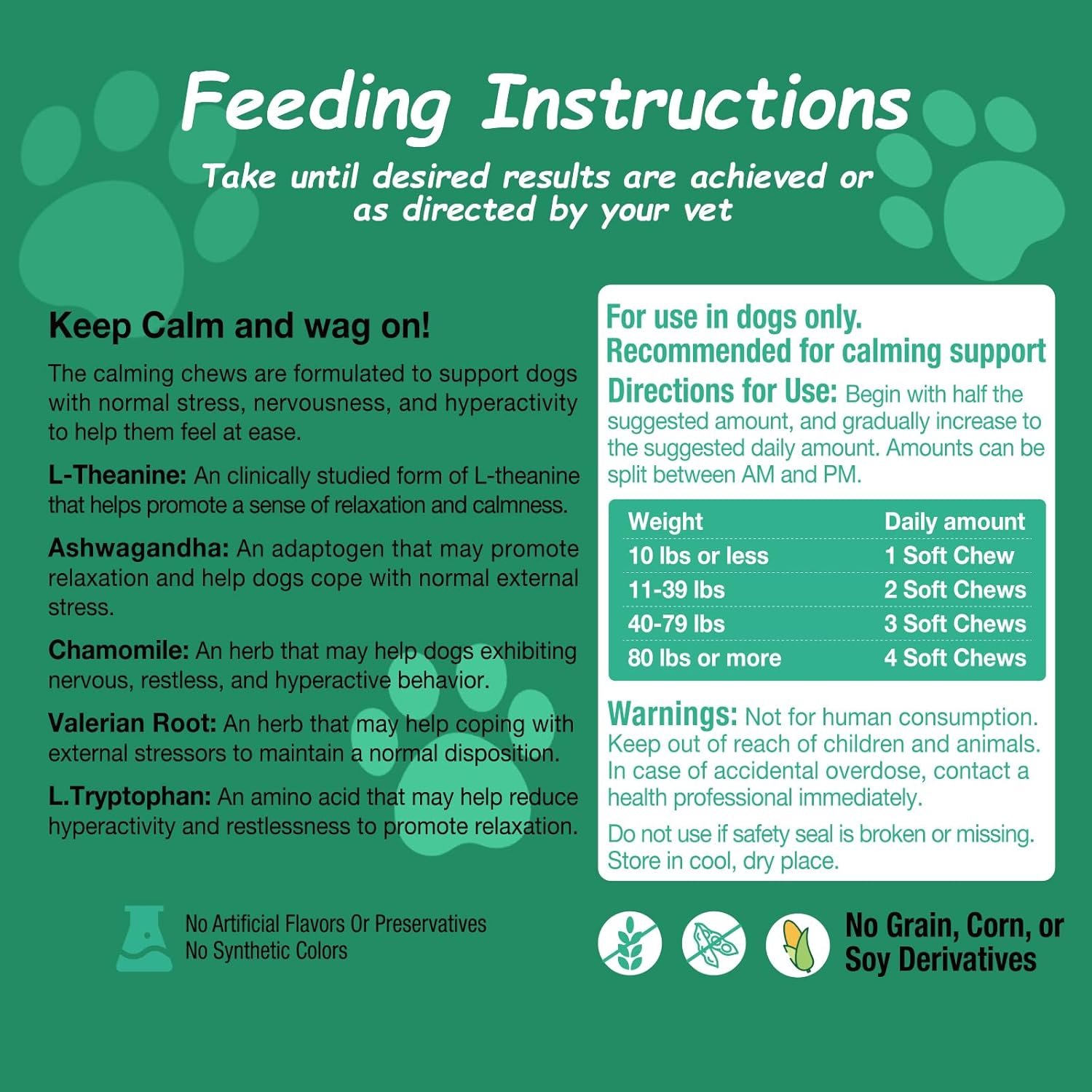 Vet-Loved Ingredients, Pup-Approved Taste:Packed with premium botanicals and amino acids, these chews deliver science-backed calming benefits—plus a delicious flavor dogs adore. No artificial additives, just pure, wholesome support.