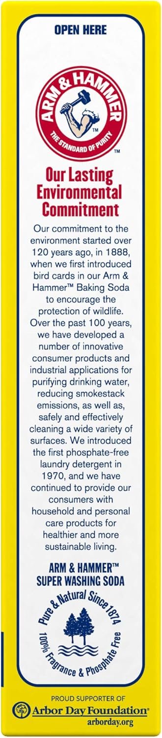 ARM & HAMMER Super Washing Soda Household Cleaner and Laundry Booster delivers super-clean results way beyond the laundry room. This versatile washing soda is 100% fragrance-free and phosphate-free to neutralize and eliminate odors naturally without the use of heavy fragrances. As a natural detergent booster and laundry additive, ARM & HAMMER Super Washing Soda improves liquid laundry detergent performance by up to 15% (1), giving you cleaner, whiter and brighter laundry. You can also use this washing soda to make your own homemade laundry soap. A great addition to your household cleaning supplies, this all purpose cleaner effectively cleans a wide variety of indoor and outdoor hard surfaces like tile, toilets, refrigerators, outdoor furniture and jewelry. Try using it as a kitchen cleaner, bathroom cleaner or silver polish to make your home shine. This natural laundry booster and household cleaner delivers an extra boost of clean from the brand you trust. ARM & HAMMER Super Washing Soda. Pure and natural since 1874. (1) For mustard and blood stains vs leading value detergent alone.