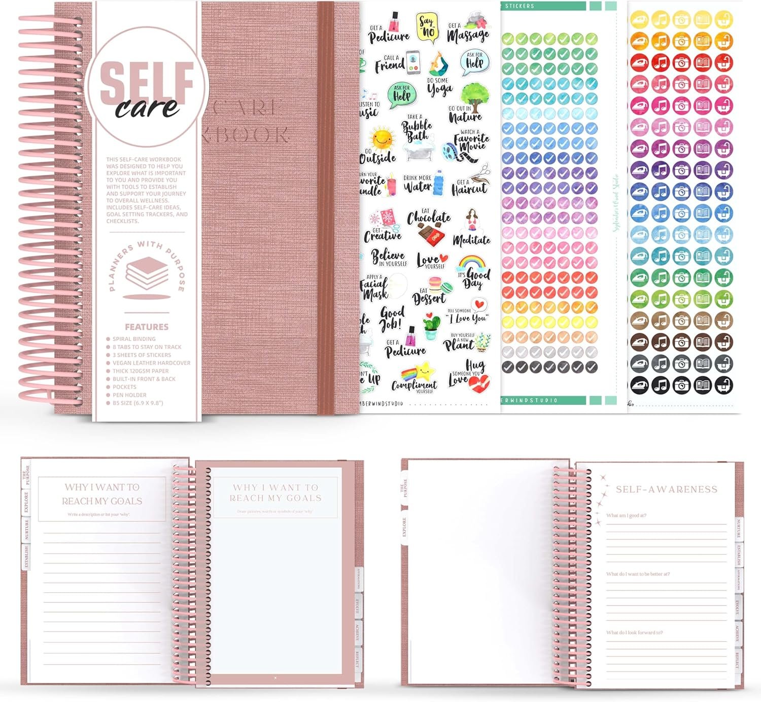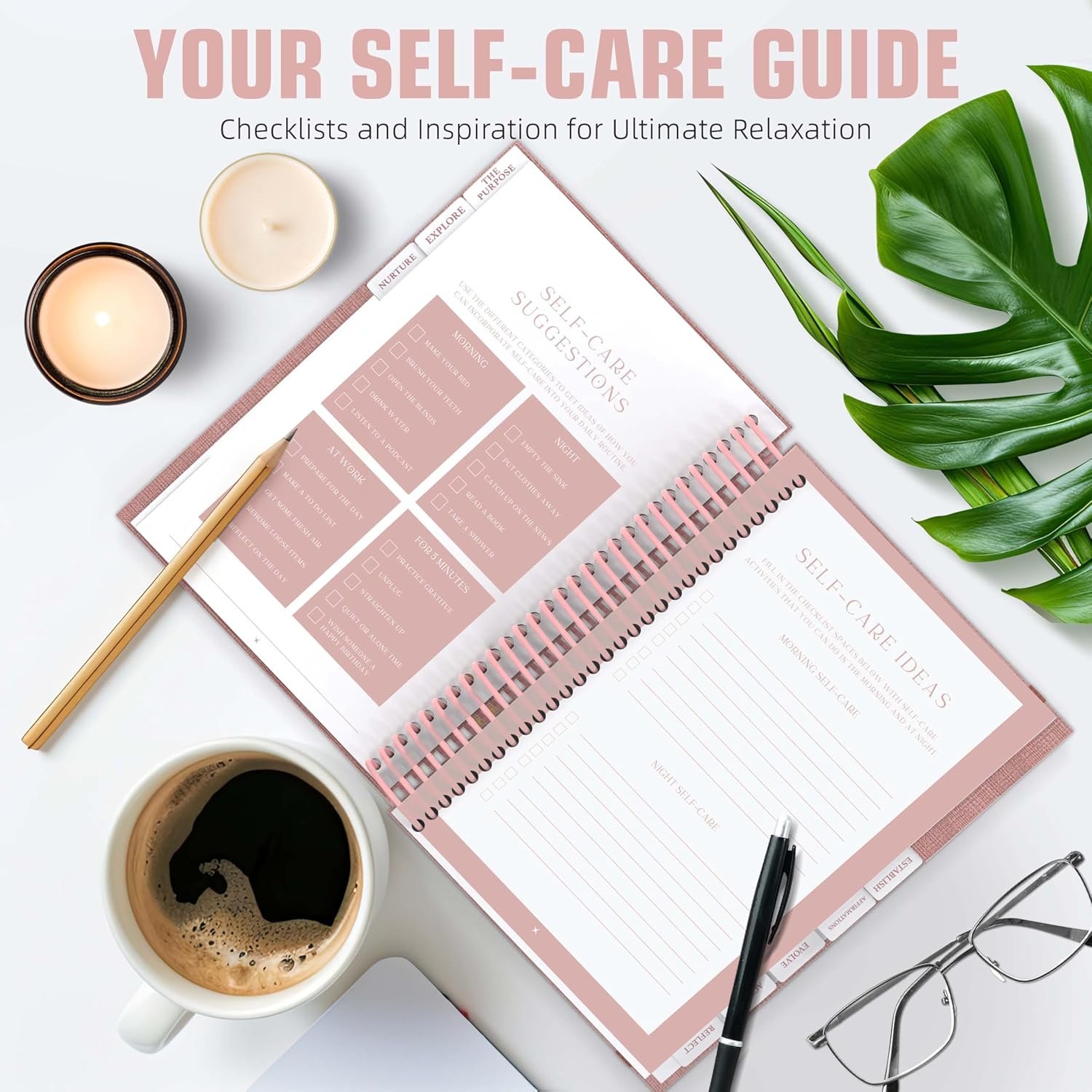 COMPACT, PORTABLE, & DESIGNED TO LAST: Our B5 size (7.5” x 10”) self care workbook comes in a larger format so it’s easy to read the prompts and has spiral binding to make writing easier and pages turn smoother. Perfect for gifting: A beautifully designed self-care gift for women, men, or anyone on a personal growth journey. Great for holidays, birthdays, or a “thinking of you” gift.