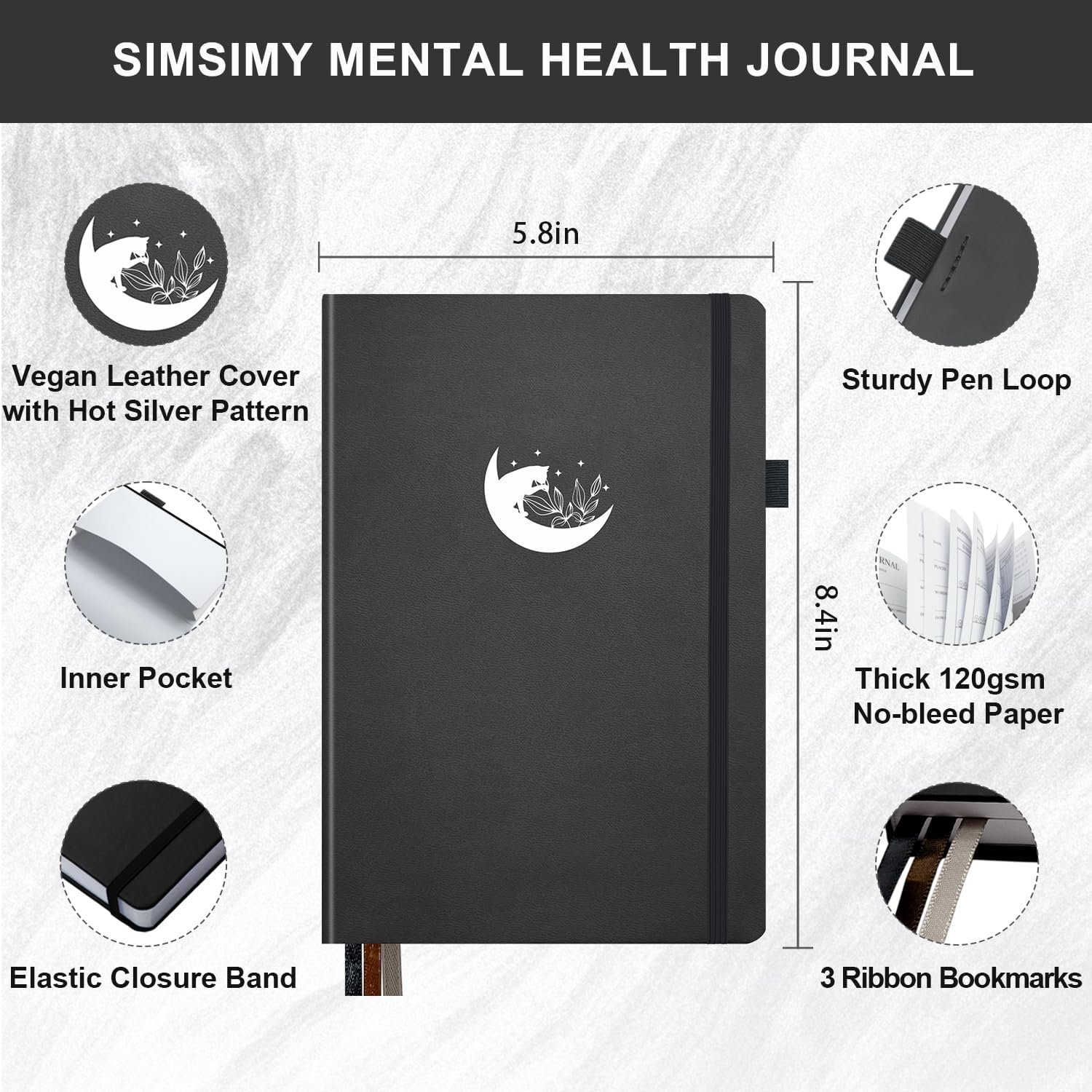 SIMSIMY Mental Health Journal Guided Prompts for Mindfulness, Self-Care