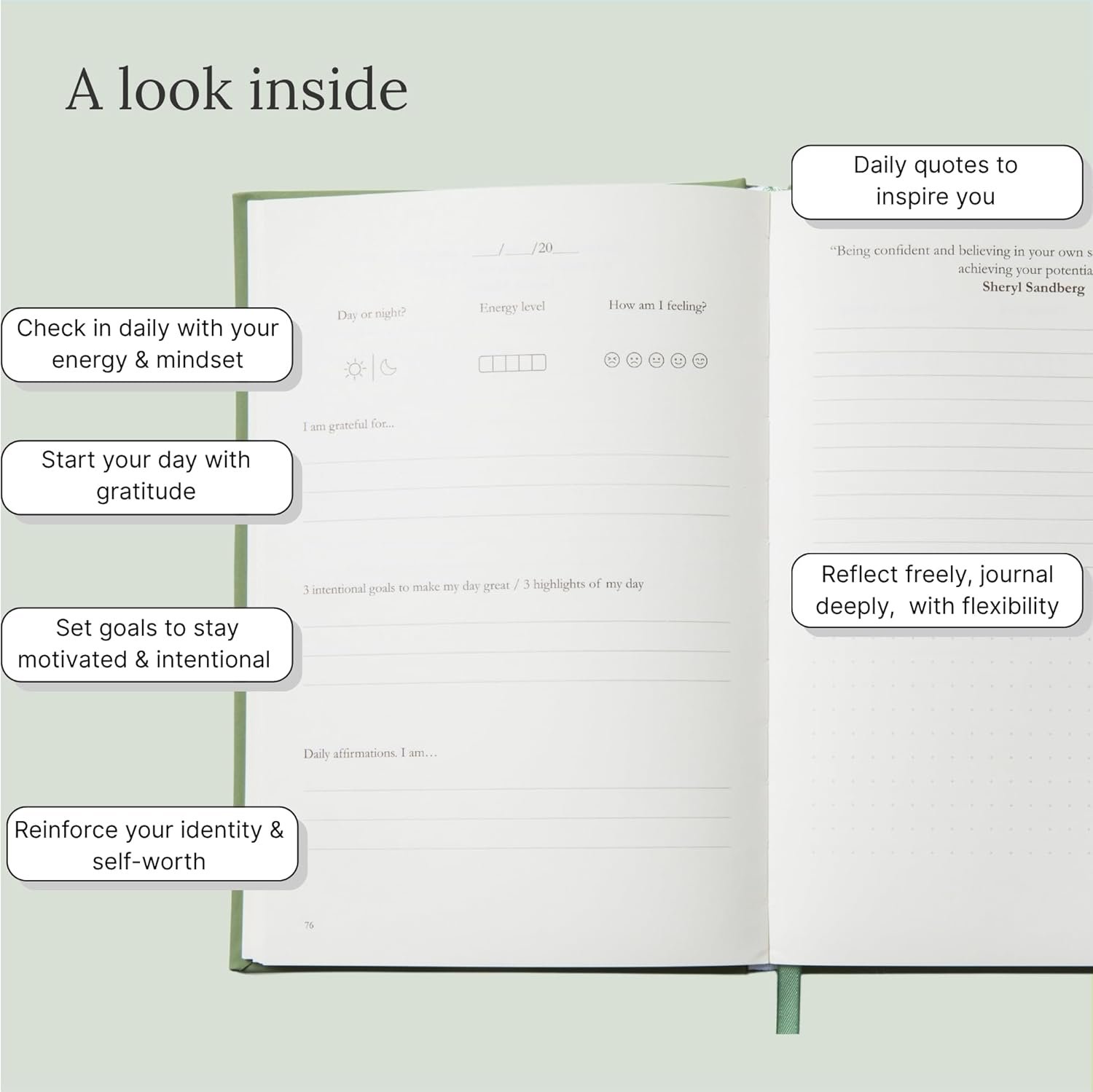 📓 CLEAN, CALMING, AND EASY TO USE: Whether you’re new to journaling or returning after a break, our intuitive undated layout makes it simple to start and even easier to stick with.