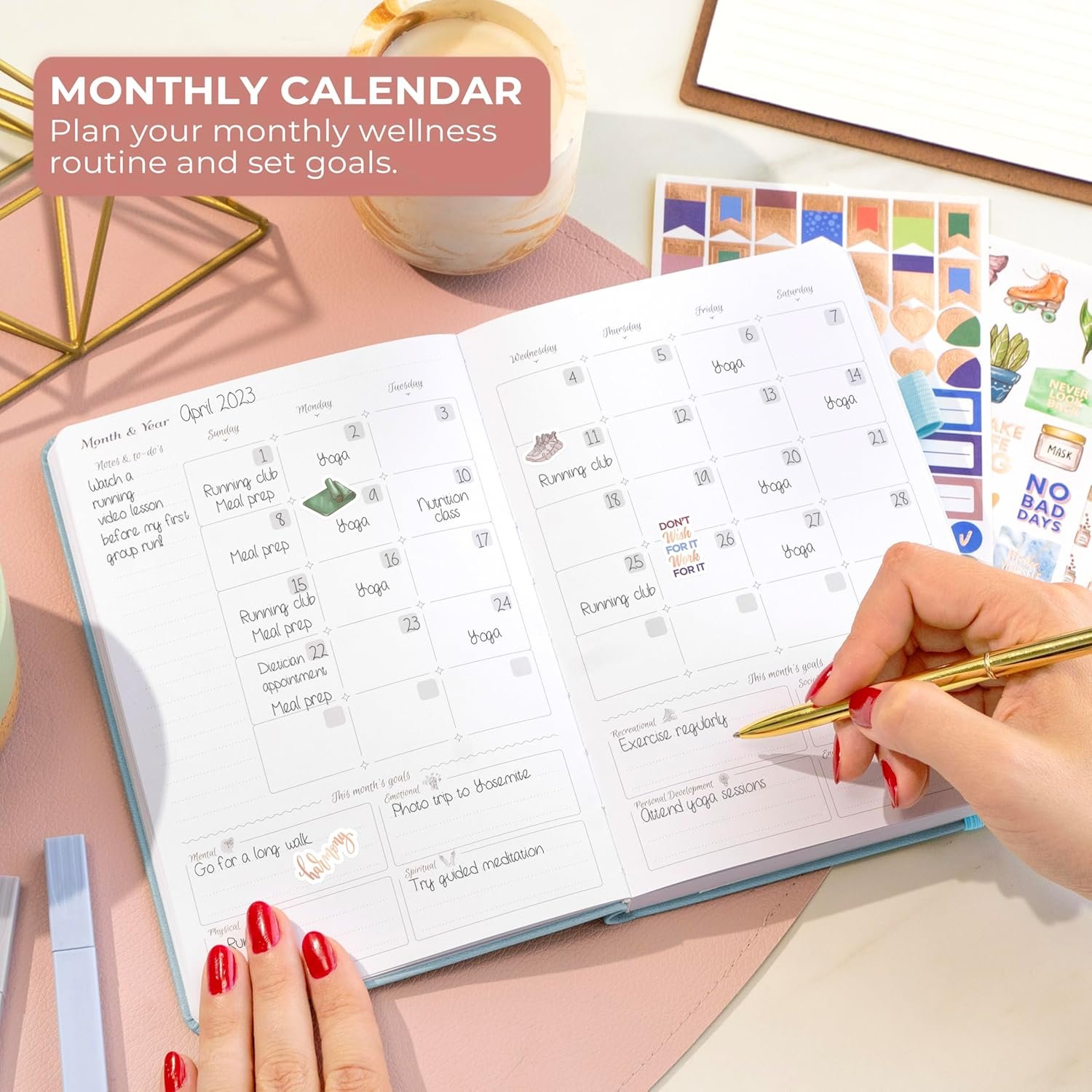 Reframe your mindset around self-care with guided mindfulness and gratitude prompts Kickstart your health journey with daily nutrition and wellness tracking Our classic A5 planner with goal-setting prompts, weekly and monthly spreads Weekly layouts designed for detailed daily time blocking and working towards your goals