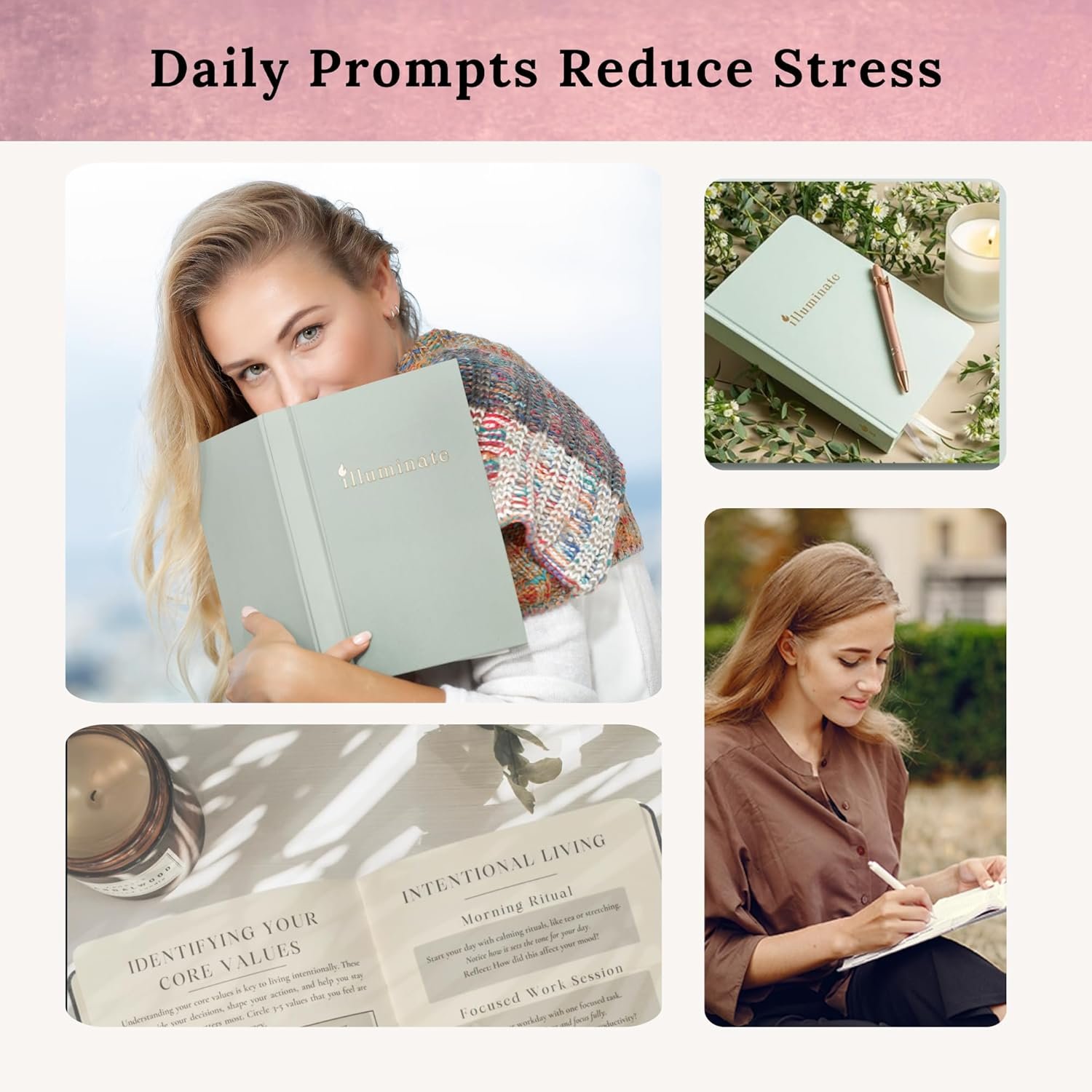 Yes! Illuminate is designed for real women with busy, overwhelmed minds. Each day offers a simple, structured prompt to guide your thoughts. Plus plenty of free space to reflect or write what you need. No experience required. Just show up as you are.