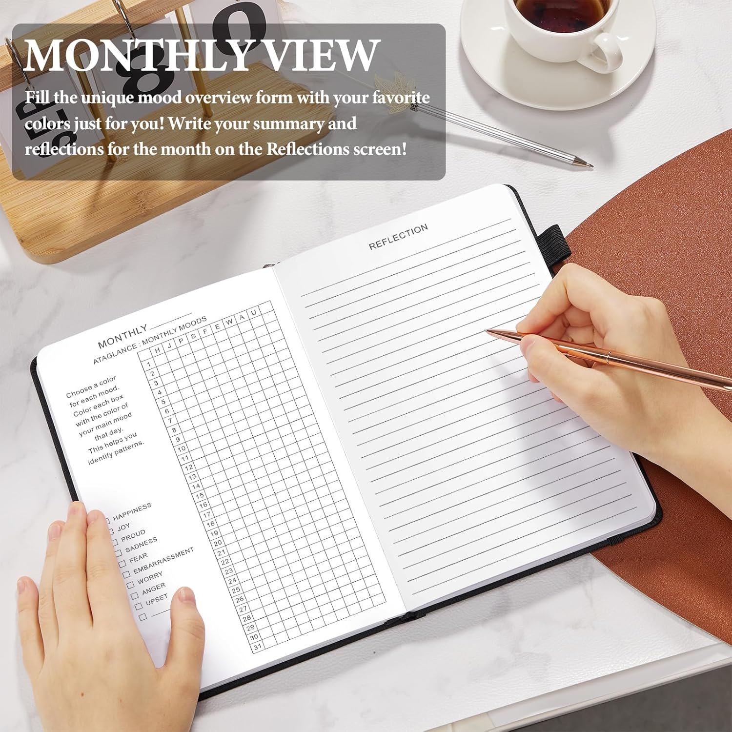 [High Quality] Our A5-sized (5.8 x 8.5 inches) mood tracker journal for women has high quality leather cover, 100gsm paper, pen loop, elastic closure, and 3 bookmarks. Can better match your daily use needs