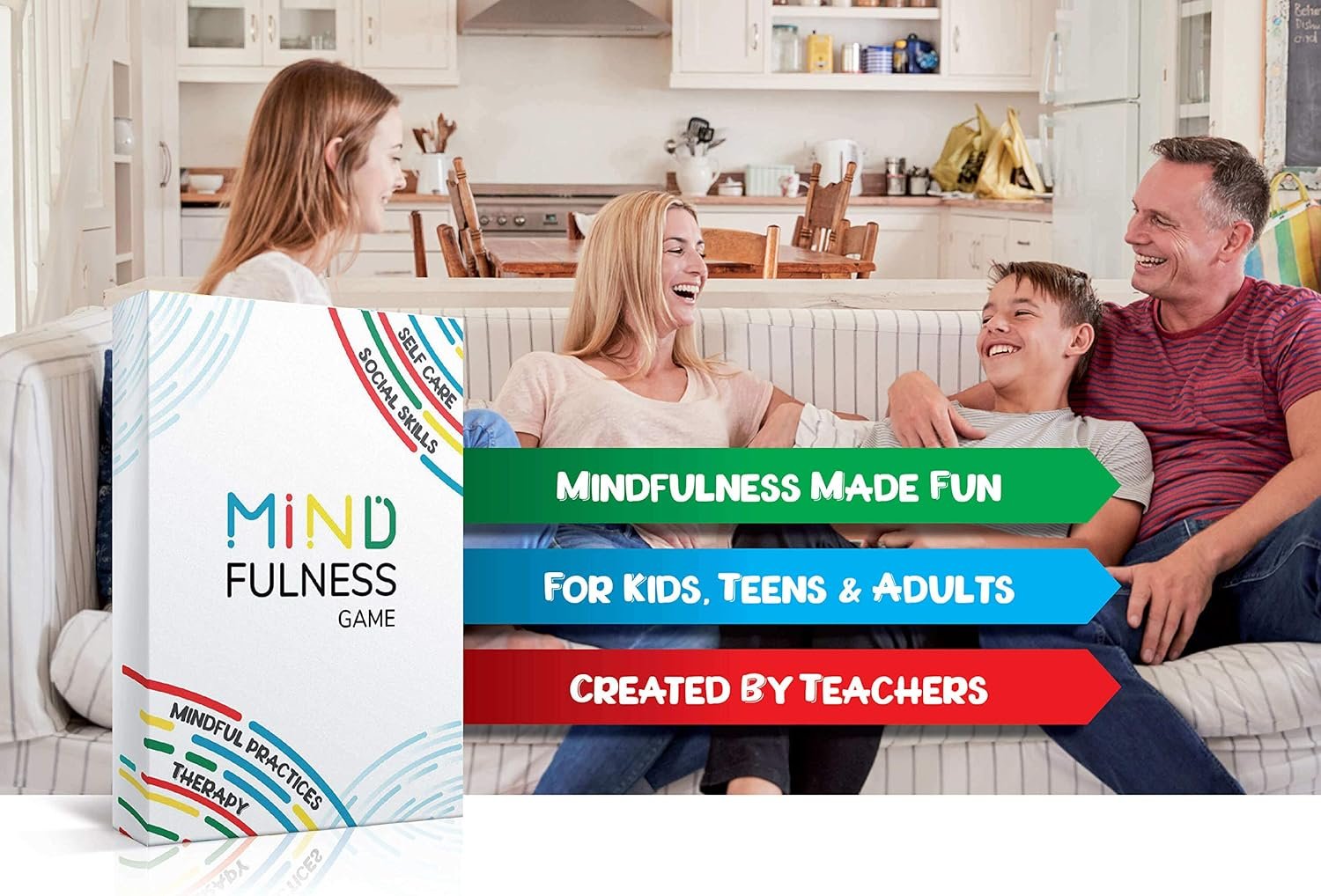 Your soon to be Mindfulness Game is perfect for anyone interested in beginning stress management and becoming more present through growth mindset in our busy world to help reduce depression. Perfect conversation discussions game for: Children, Kids, Teens, Adults, Client, High School Counseling, Counselor Gifts, Coworkers, Therapist Office Decor / Supplies, Students, Psychology Gift, Family Board Game Nights, Colleagues and Teachers.
