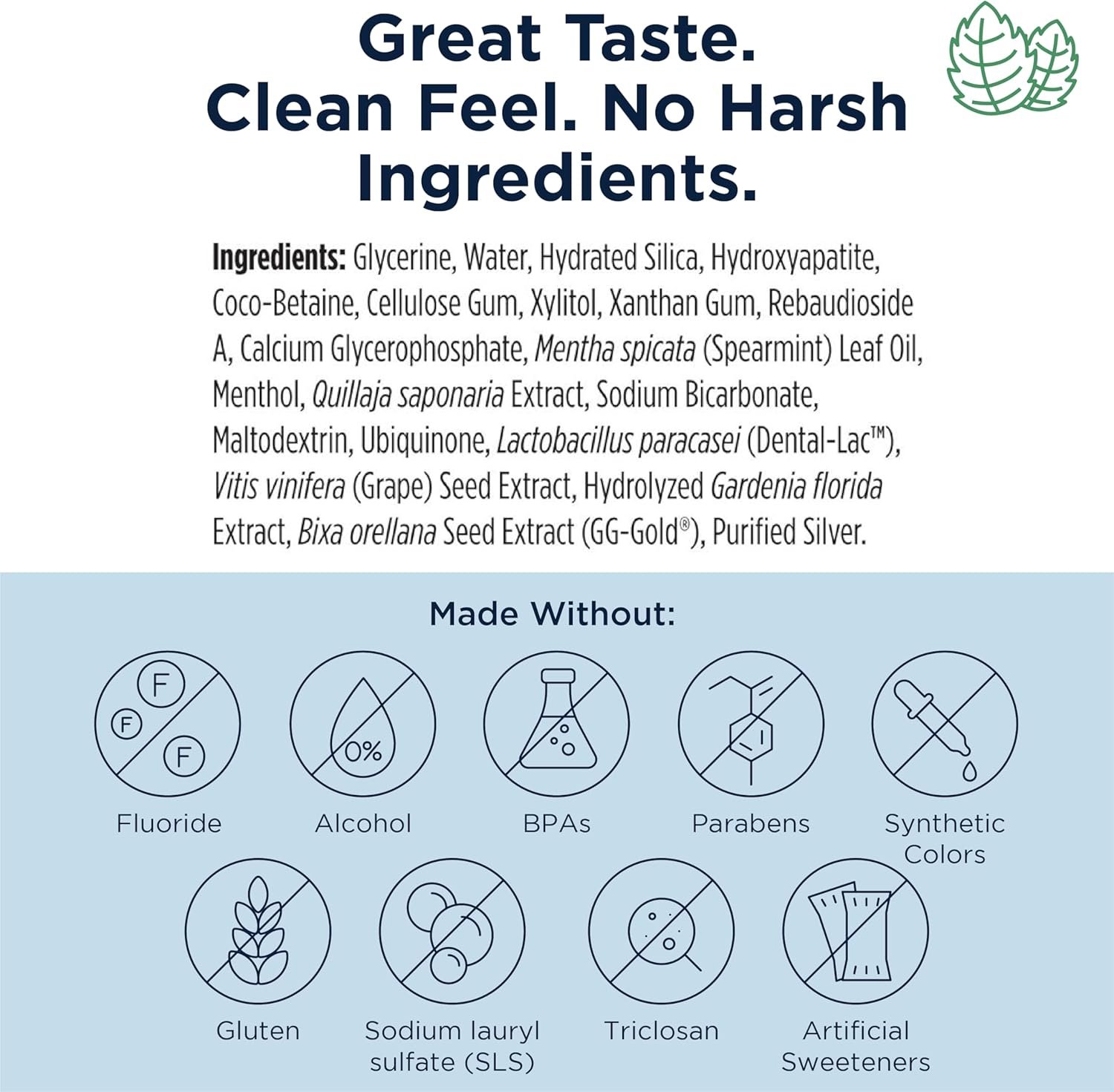 Gentle Foaming Action Without Sulfates – This SLS free toothpaste uses coco-betaine sourced from coconuts instead of traditional sulfates for foaming and cleansing so you get the best of both worlds: a non-gritty, foaming toothpaste in a gentle formula.