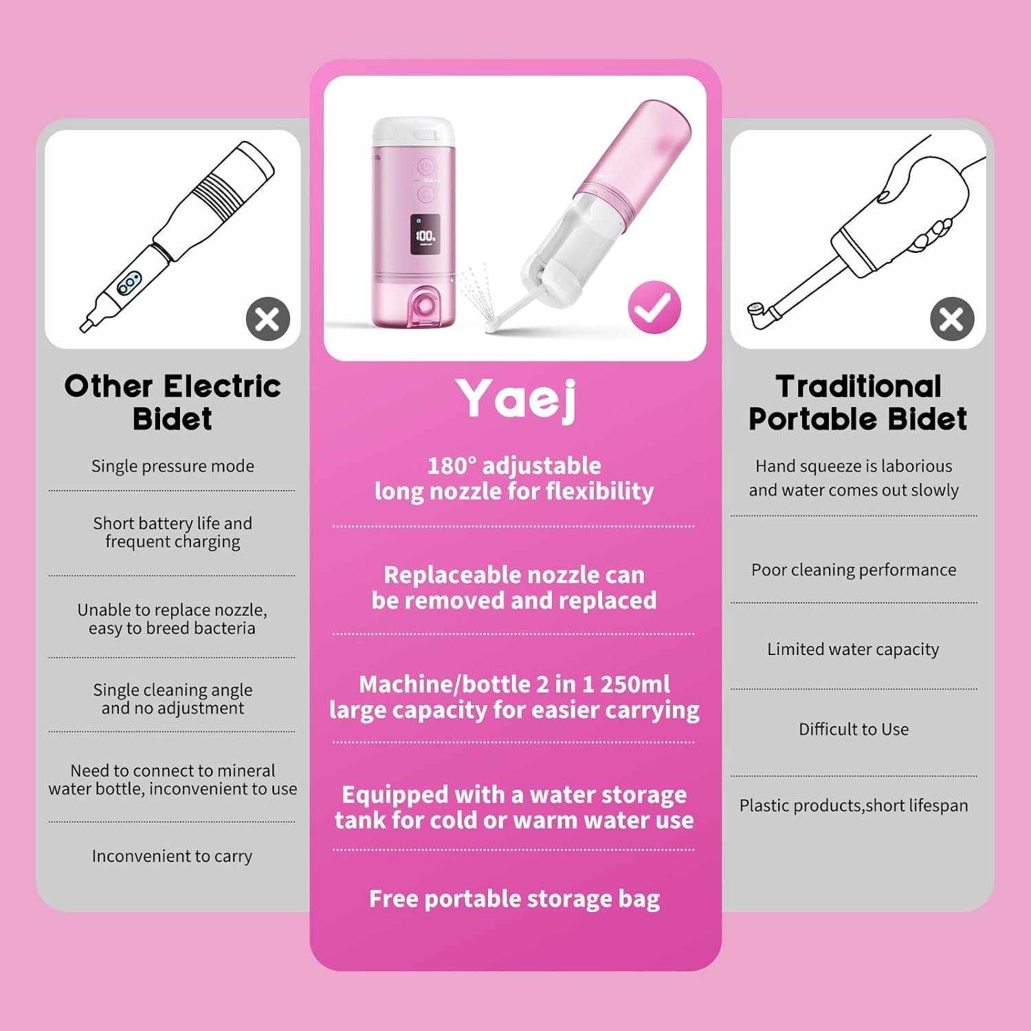 Outstanding Performance & Smart Design- Say goodbye to traditional handheld bidet that require manual squeezing. Our electric bidet can precisely control water pressure and provide a steady flow of water at the touch of a button. The 250 ml large-capacity detachable water tank and retractable design make it lightweight and more convenient to carry.