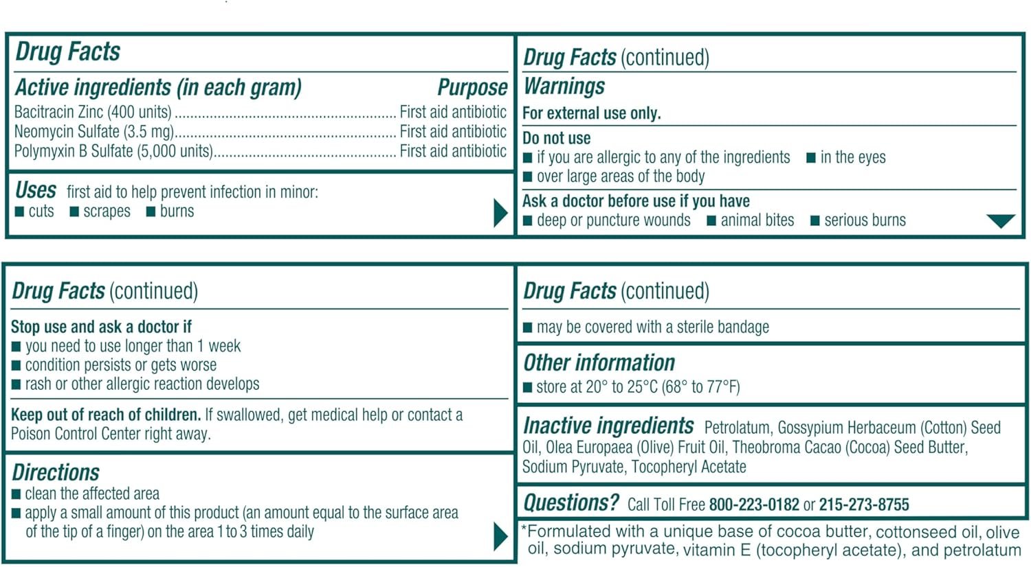 Wound care ointment is formulated with neomycin sulfate, bacitracin zinc and polymyxin B antibiotic ingredients to provide 24-hour infection protection for minor wounds