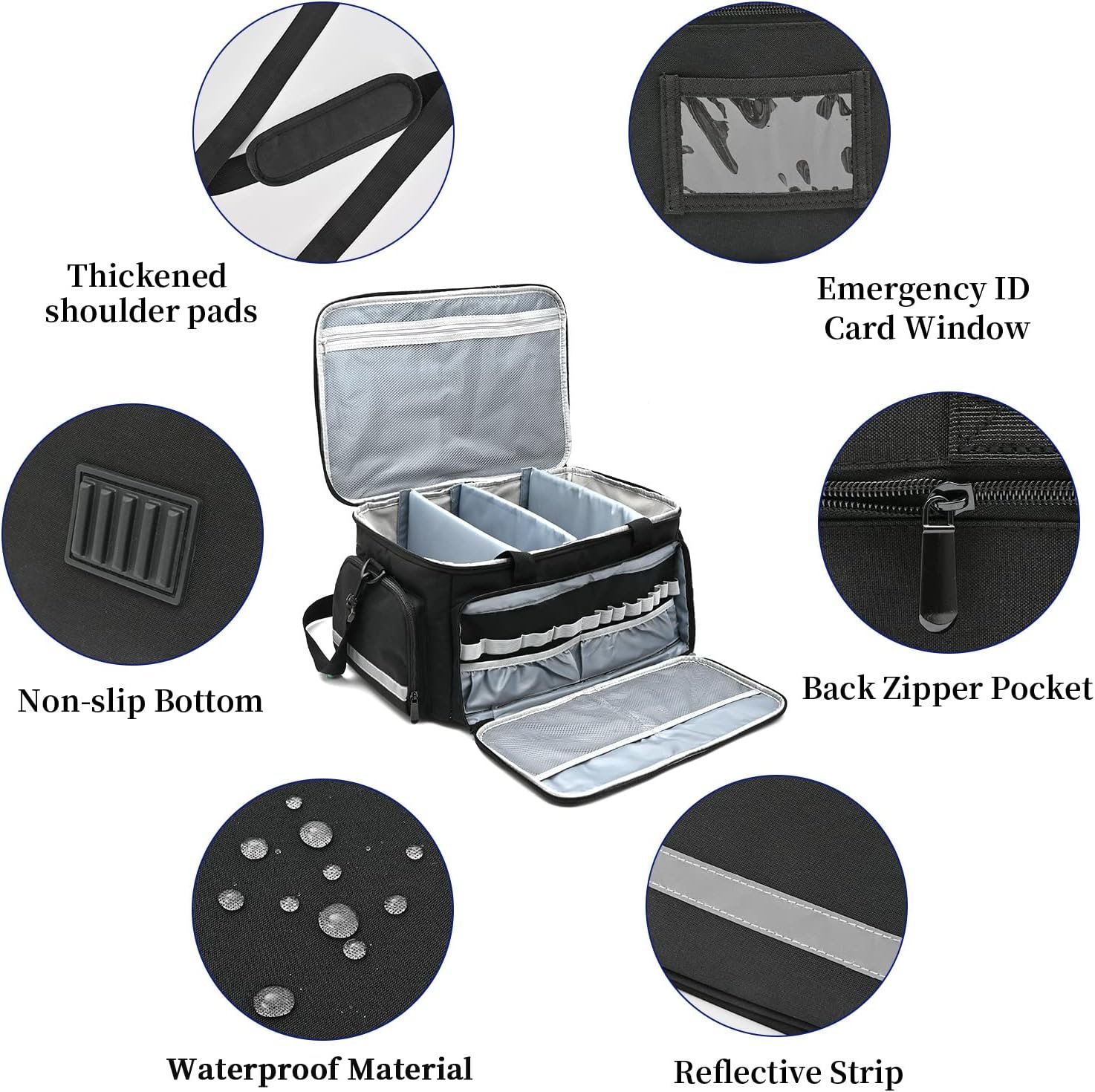 Unique Design: The reflective strip on the front of this first aid bag is also great at night or in bad weather to quickly find our medical equipment bag when needed. The back ID card window is specially designed for user identification to easily identify who the bag belongs to and will not take it wrong