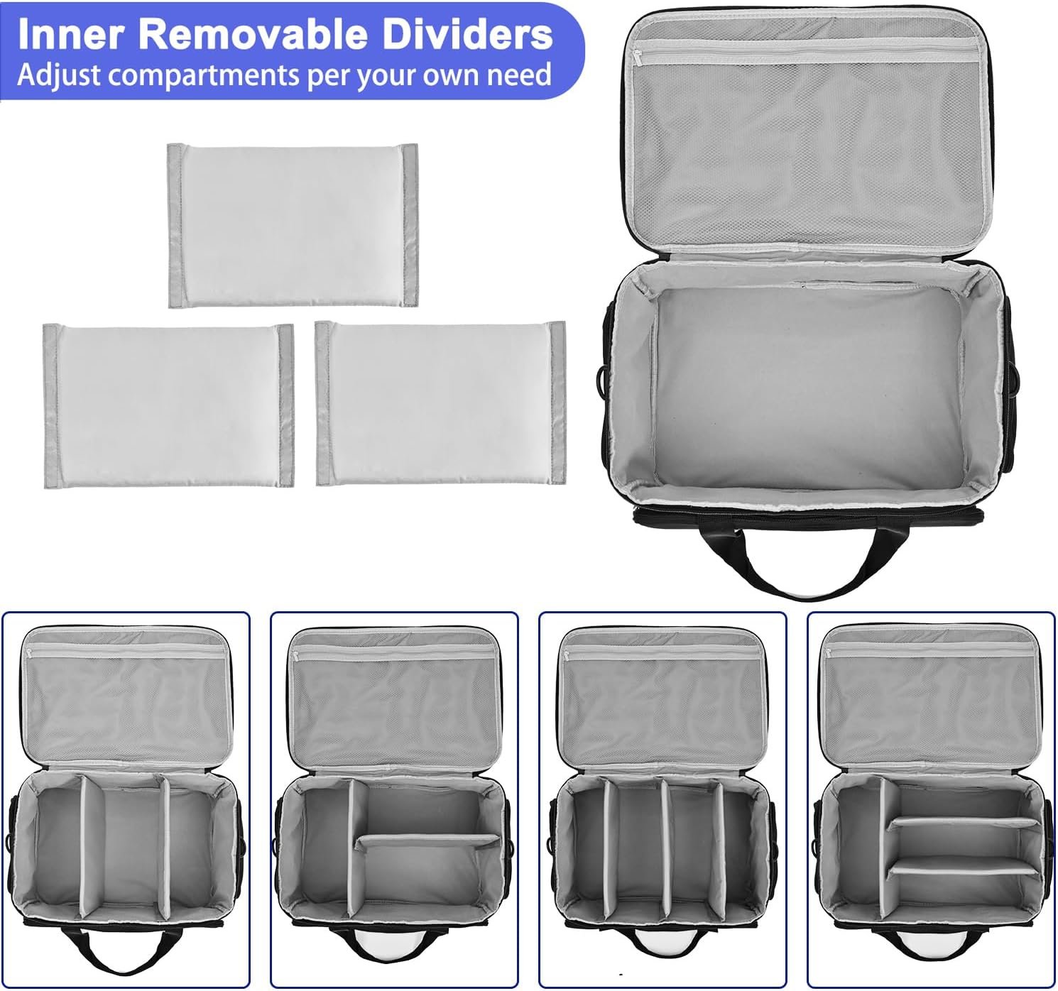 Adjustable Main Compartment : The home health nurse bag has 3 adjustable Velcro dividers that divide the main space into 4 sections, helping to easily organize different medical supplies as needed