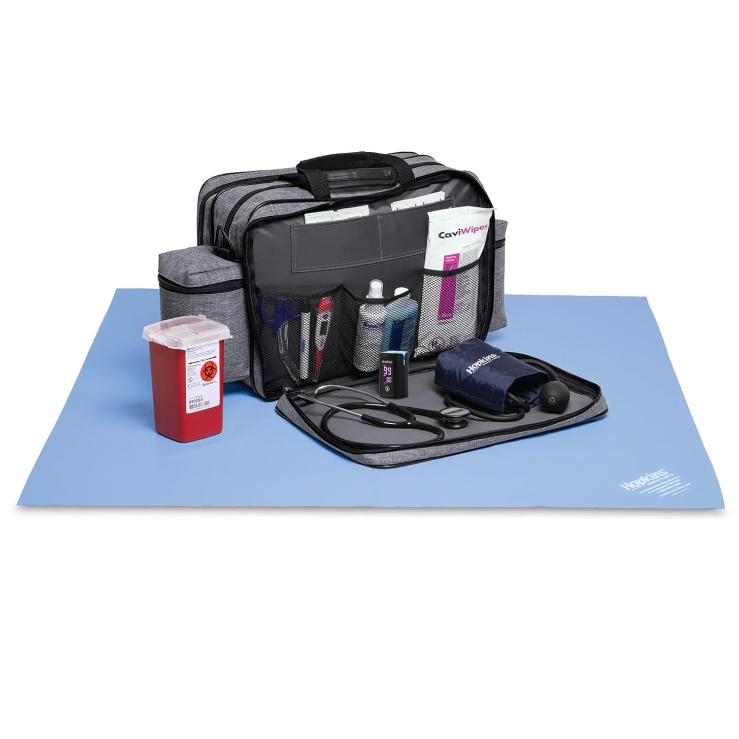 For an added layer of infection control, consider a Reusable Antimicrobial Bag Barrier, which spreads out easily underneath your favorite medical bag. They are easy to clean and will help ensure you’re not spreading infection from one residence to another.