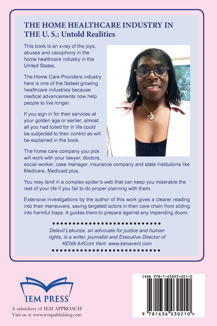 This book is an x-ray of the joys, abu ses, and cacophony in the home healthcare industry in the United States.