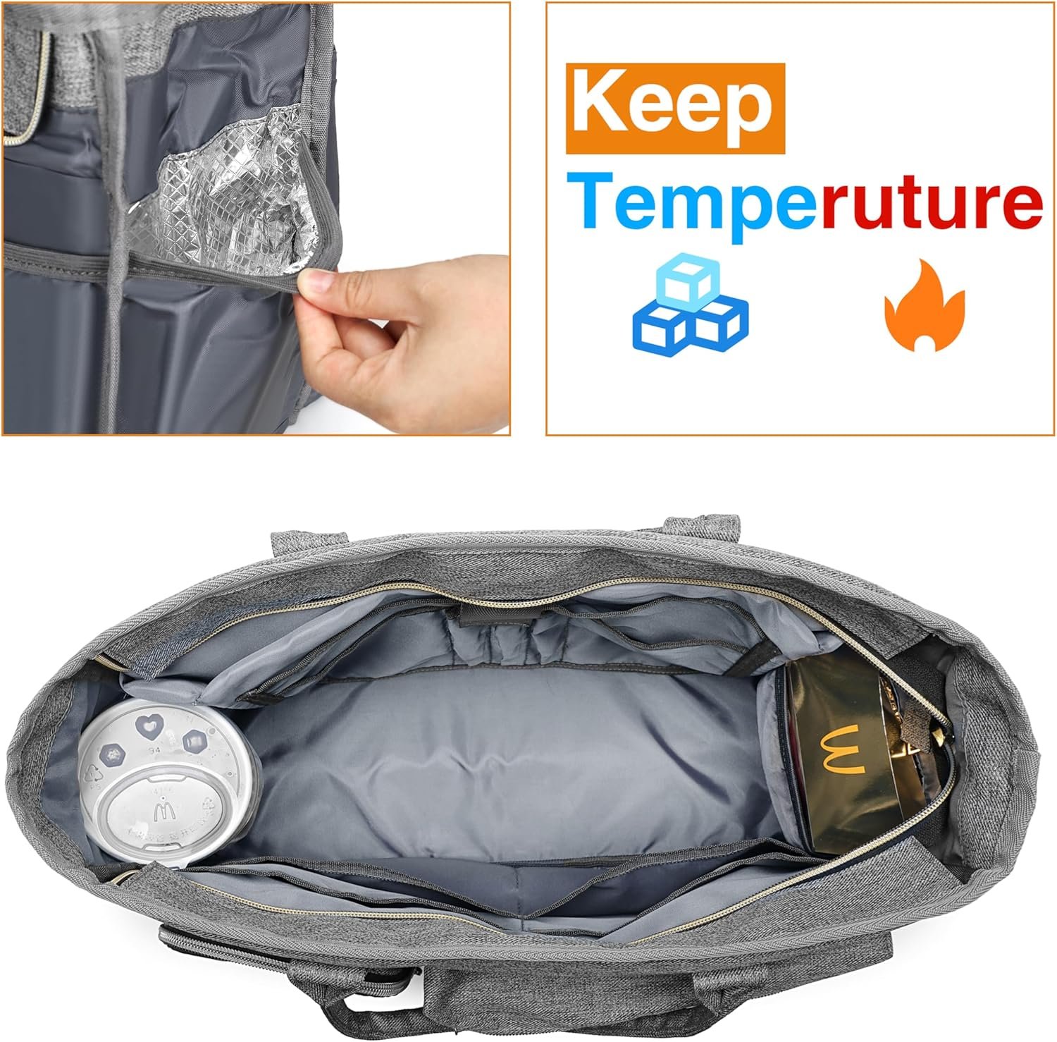 2 Insulated Pockets is large enough to store cup of cold cola, or warm coffee, tea, hamburger, etc.