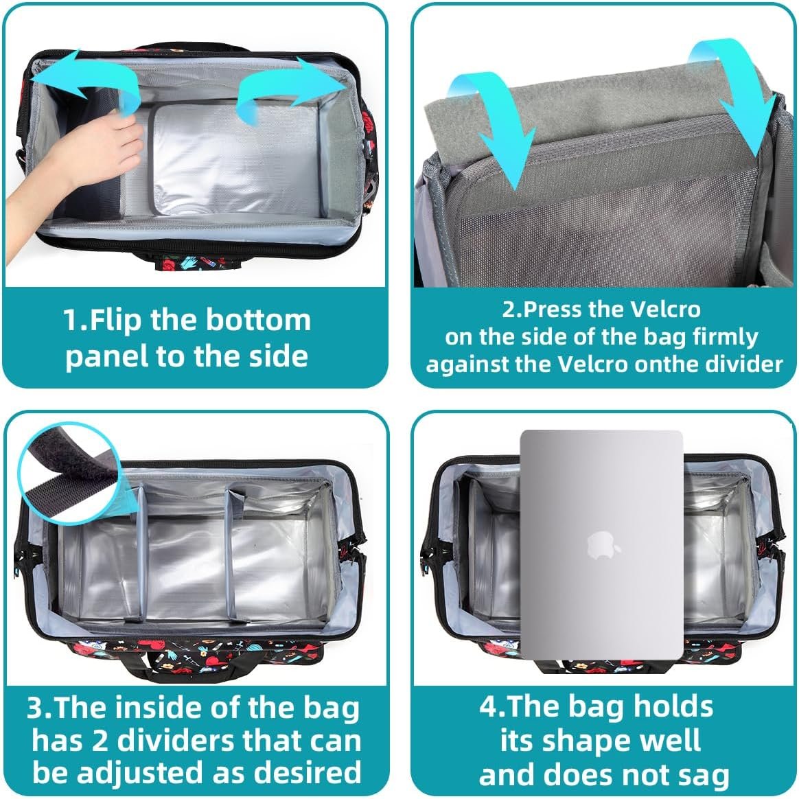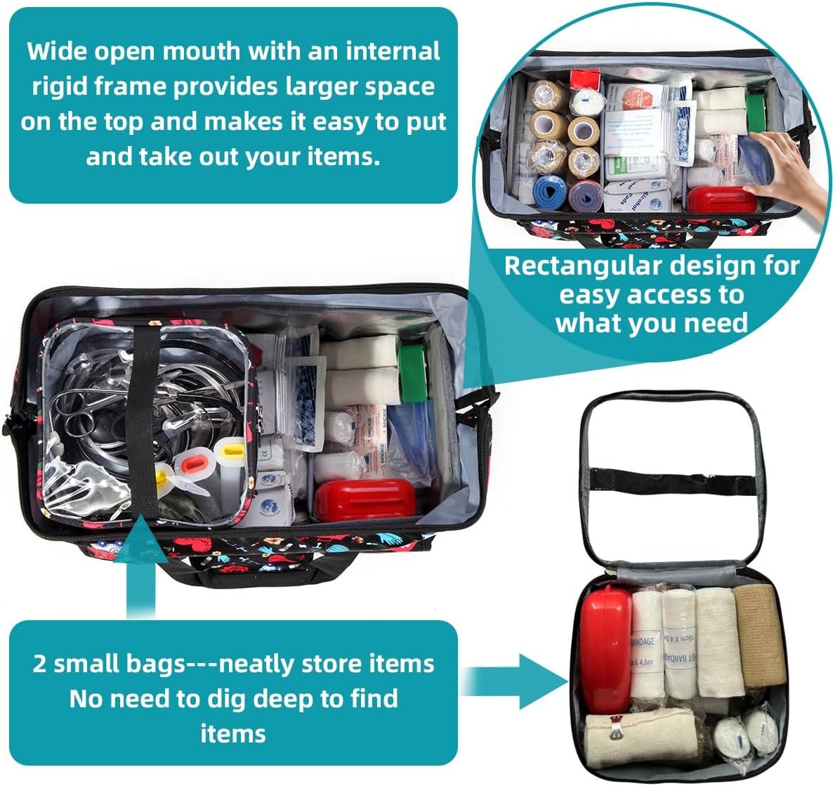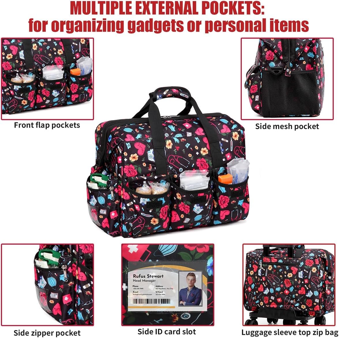 Ample Storage Capacity: The NURSE Rolling Medical Bag features a spacious main compartment and multiple internal and external pockets, providing ample space to store various medical supplies, instruments, and documents. Say goodbye to clutter and stay organized and efficient during your work.