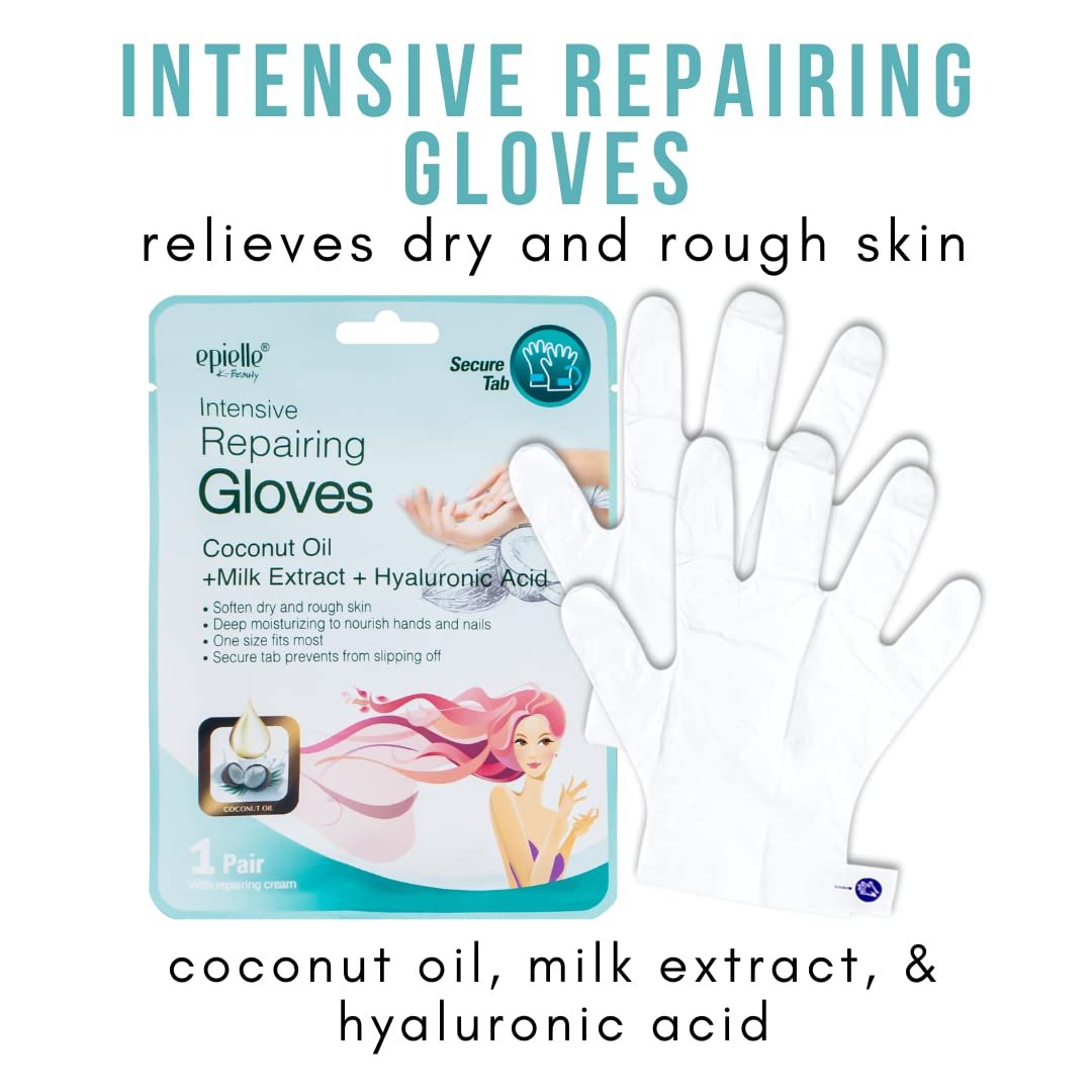 💛 Intensive Repairing Gloves with coconut oil, milk extract, and hyaluronic acid that nourishes dry and cracked hands