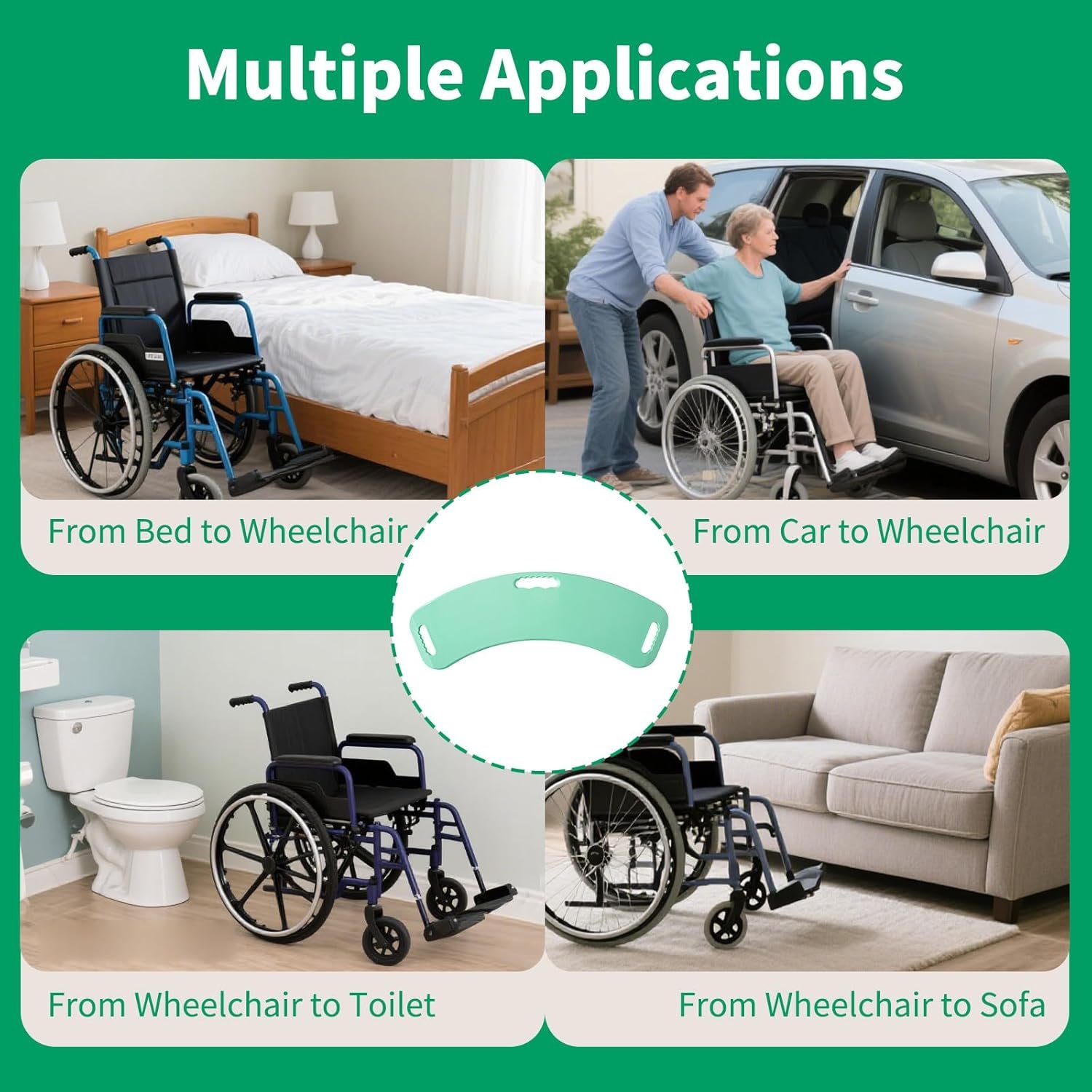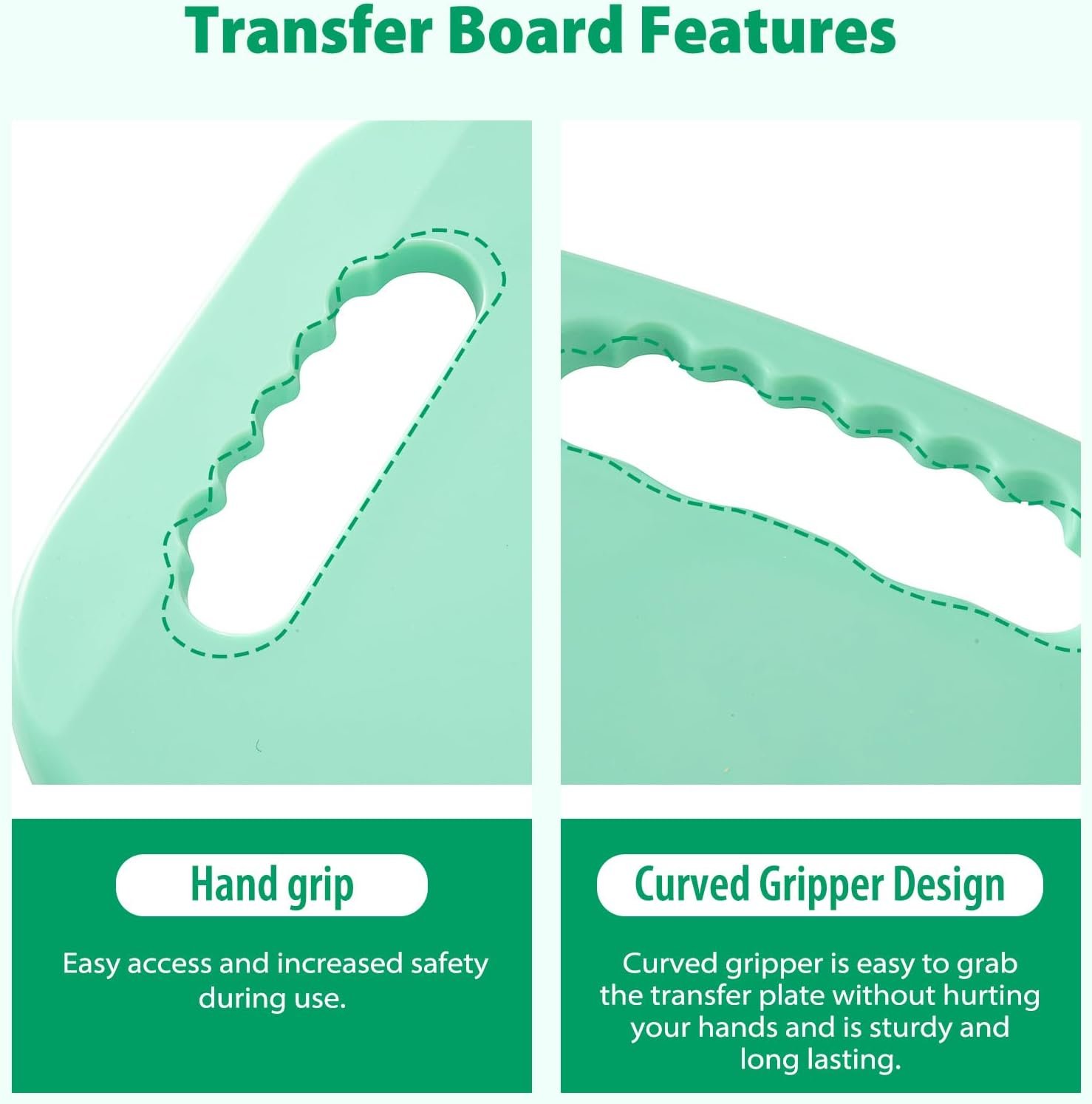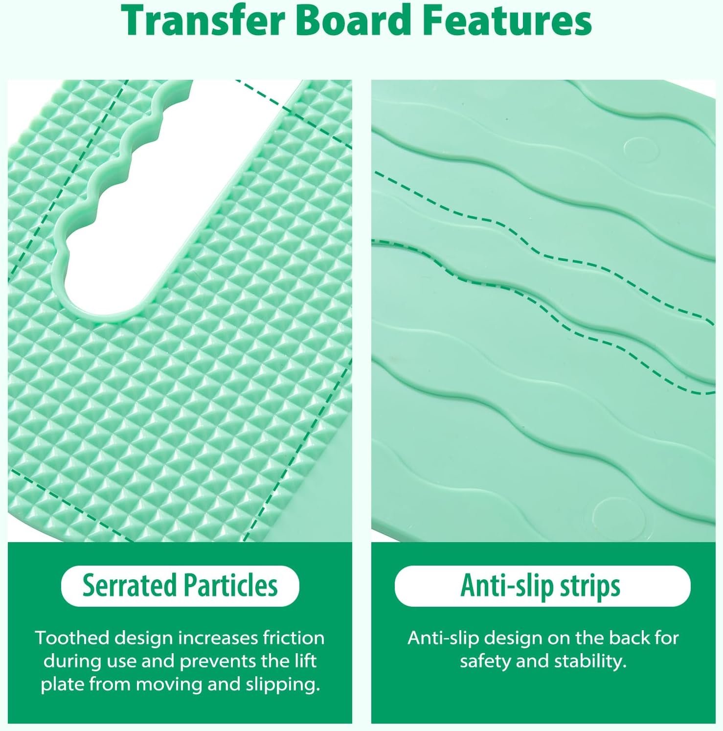 【Curved Design】: The transfer board has curved edges and is made of smooth material that will not scratch the user. If you encounter any problems during use, please contact us immediately. Patented US Patent No. D1,004,898
