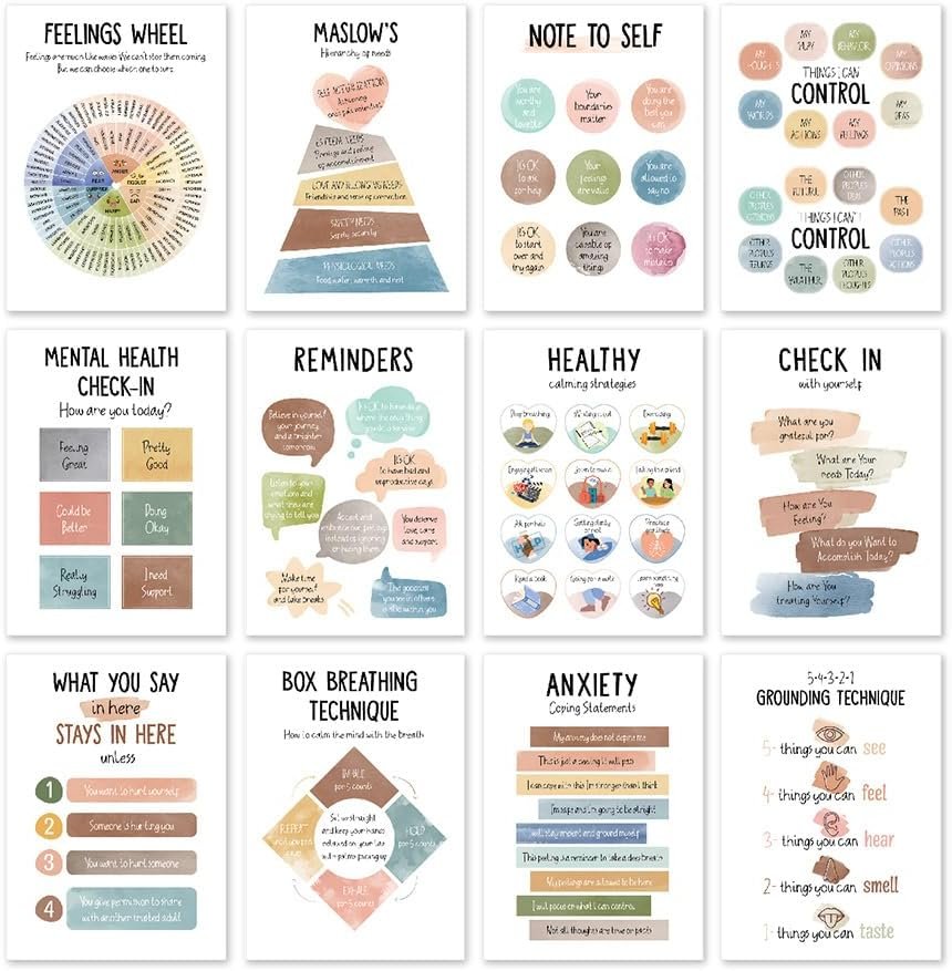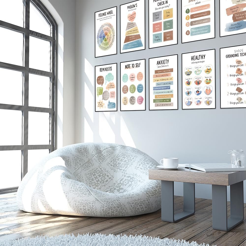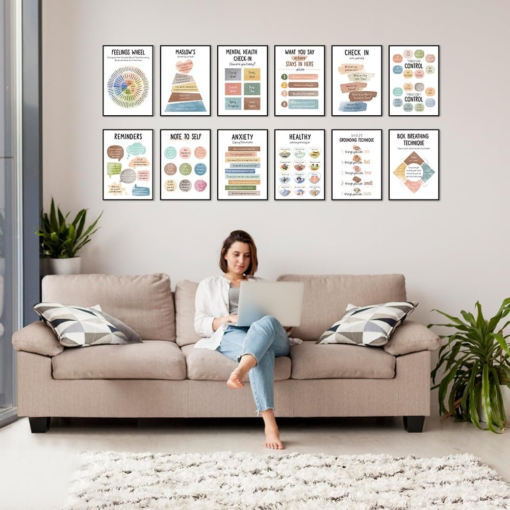 Premium Quality & Durable Design:Made with high-quality coated paper and double-sided lamination, these posters are waterproof tear-resistant and having vibrant & long-lasting colors. This poster hanging art has a unique design that combines elements of mental health with artistic beauty. It not only attracts people’s attention, but also triggers resonance and reflection among viewers.