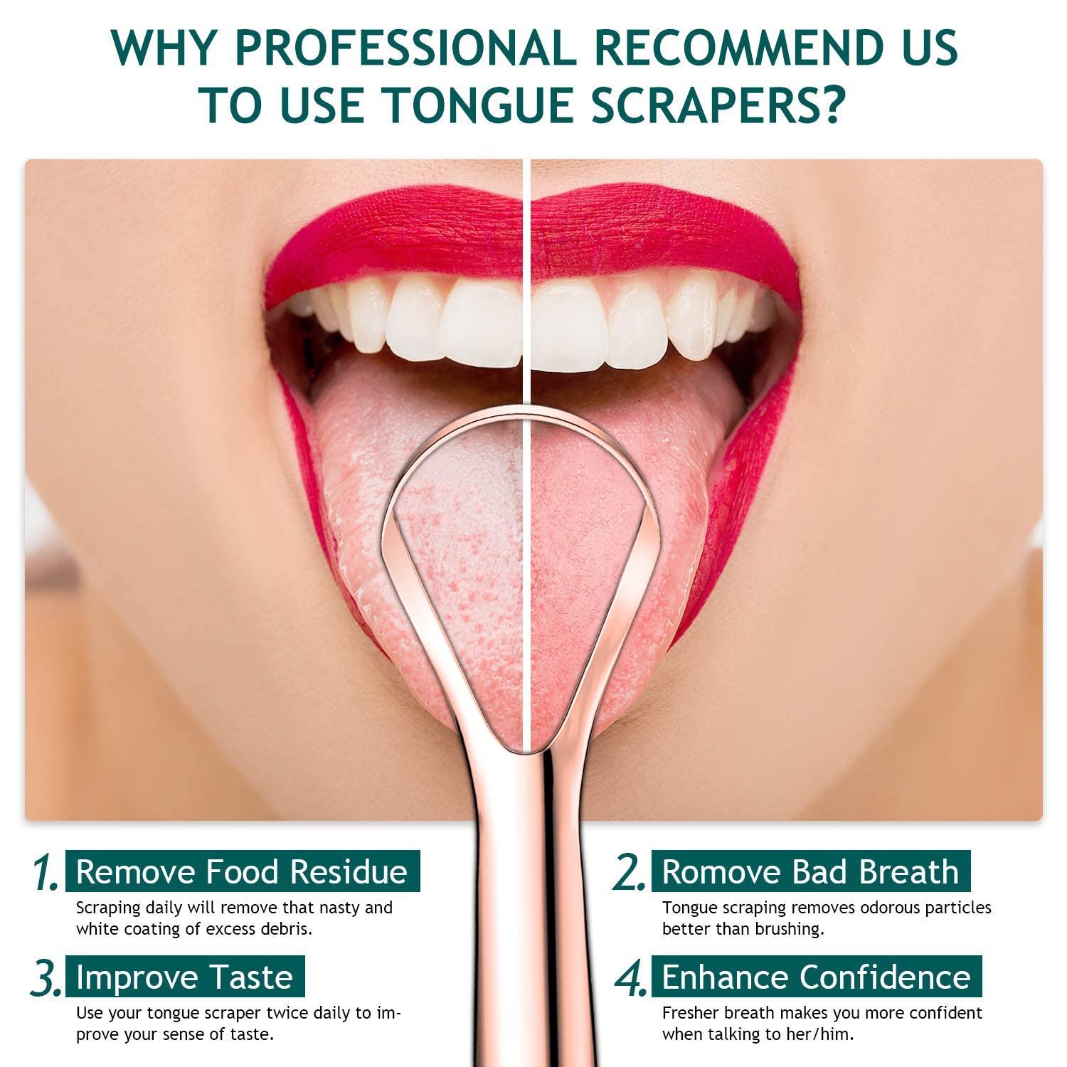 Remove Bad Breath & More Confidence–Easkep provides professional tongue scrapers which clean your tongue in seconds, solve the trouble of bad breath, make you more confident and smile brighter–you deserve the best