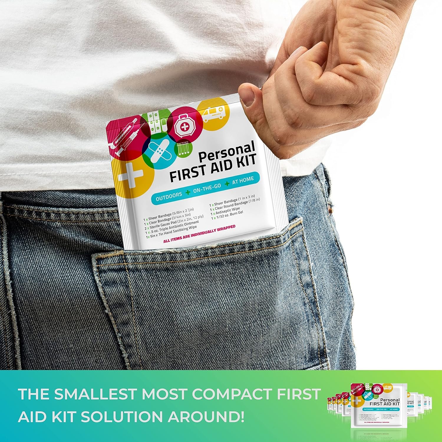 STAY SAFE IN A SMART, CONVENIENT & FUNCTIONAL WAY: This 10 Pack First-Aid Kit contains all the items you will need to treat small injuries while out of the house without all the effort of carrying around a cumbersome box with tons of items that you do not need. Perfect Home Care items in small packaging