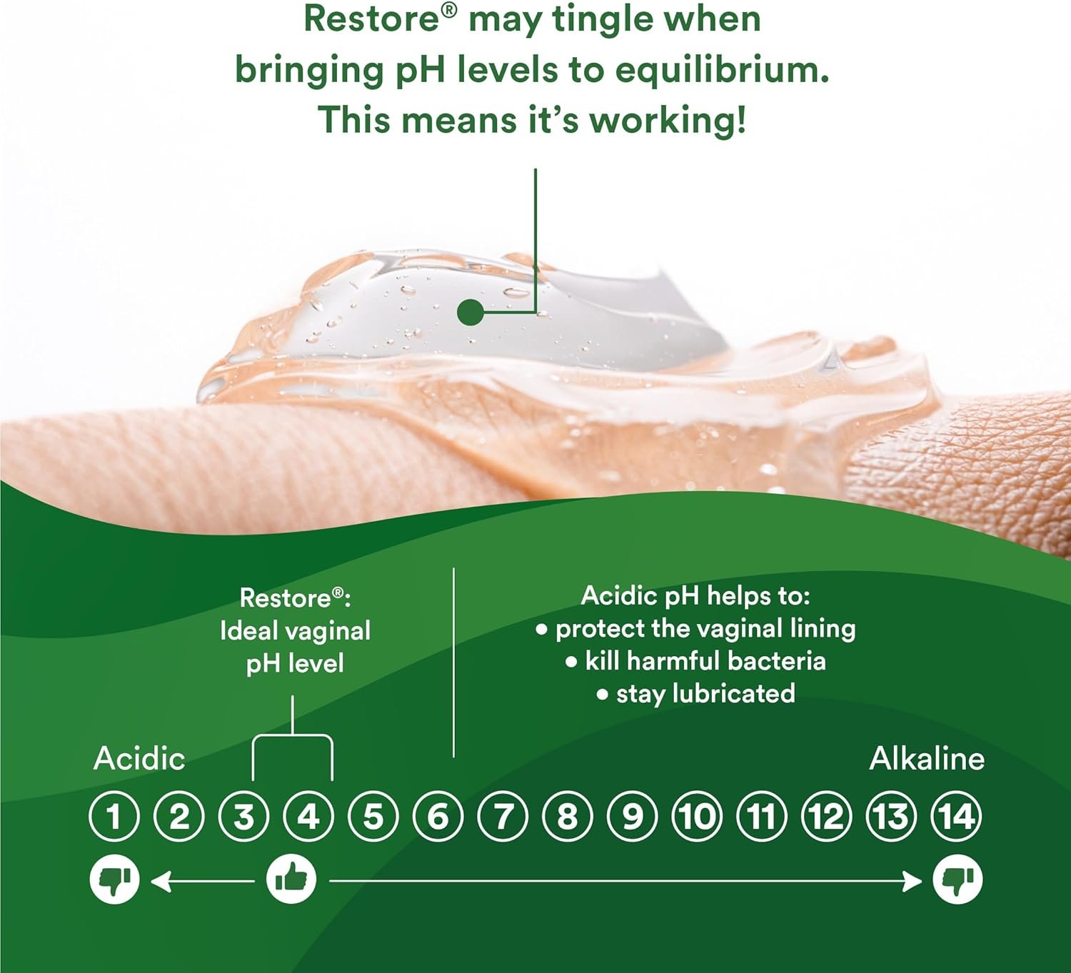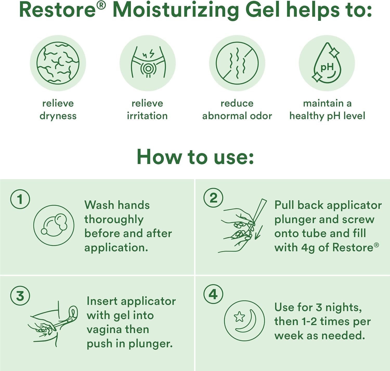 RELIEVES DRYNESS & IRRITATION: Fight dryness, discomfort & restore your pH balance. Restore is formulated to help lower elevated pH with a natural formula that closely mimics your body’s natural lubricating response to promote a healthy vaginal ecosystem