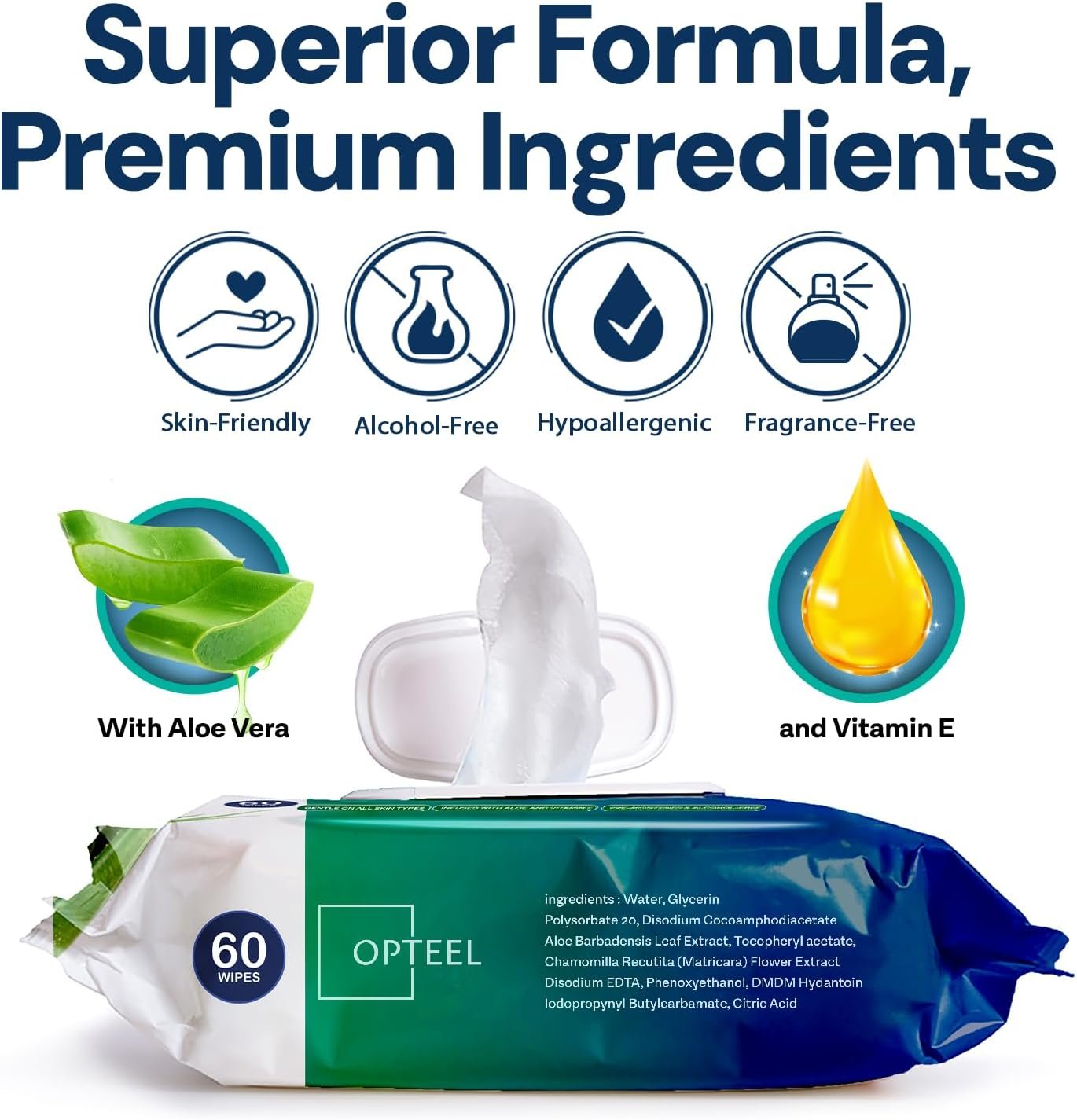 CONVENIENT PACK & USAGE: Each box includes 12 packs of 60 non-flushable wipes, totaling 720 wipes. Ideal for home care, medical facilities, or on-the-go needs such as workouts, camping, or travel, these wipes offer practical solutions for maintaining cleanliness and a fresh feeling. They are also effective as incontinence wipes for women and men.