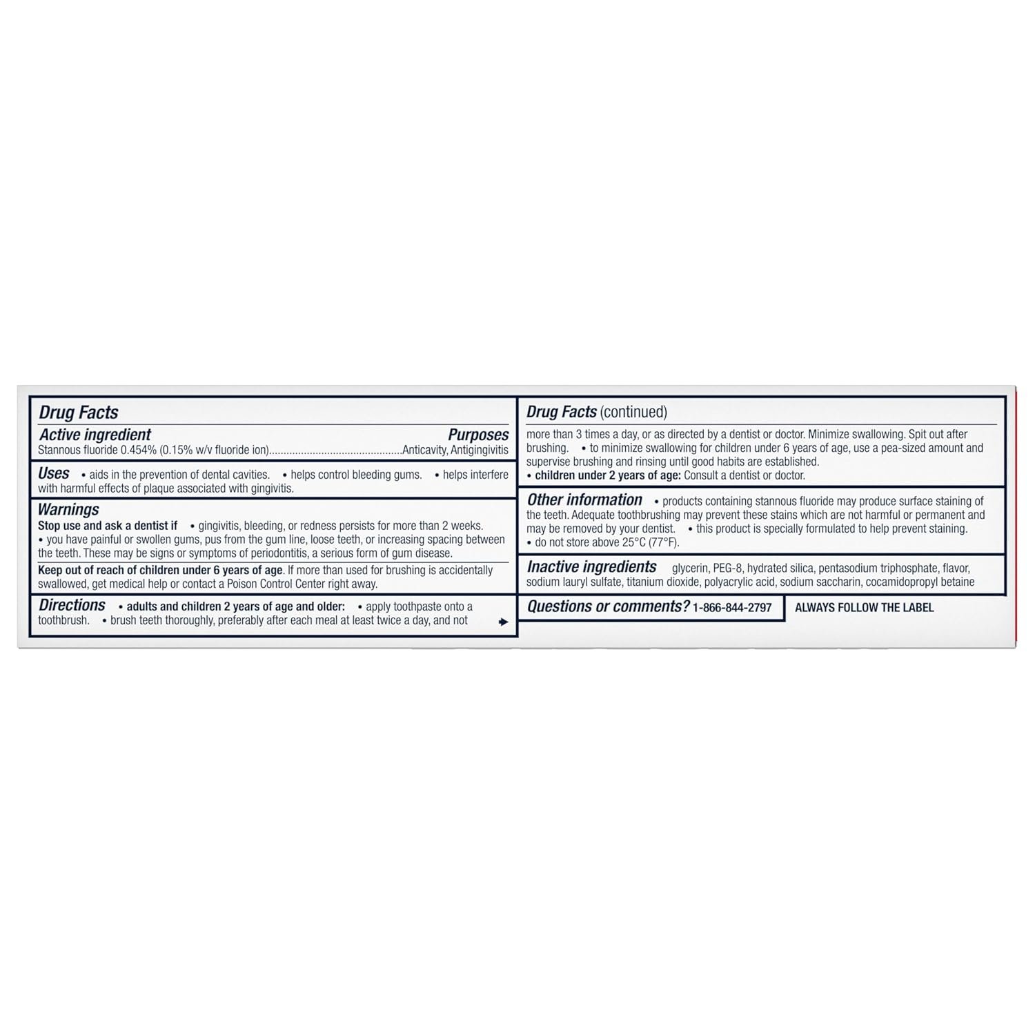 Parodontax Complete Protection Toothpaste for Bleeding Gums is a gingivitis treatment with eight benefits to keep your gums and teeth healthy, clean and strong. This stannous fluoride toothpaste for adults removes plaque, freshens your breath, strengthens your teeth, deep cleans, whitens, reduces bleeding gums, reduces inflamed gums and reduces swollen gums. This antiplaque toothpaste keeps the seal between your gums and teeth tight to prevent gingivitis. Clinically proven as an effective bleeding gums treatment, this enamel protection toothpaste is made with a formula that is three times more effective than sodium monofluorophosphate toothpaste at removing plaque and plaque bacteria. In a 3.4 oz tube, this Pure Fresh Mint gingivitis toothpaste comes in a travel size within TSA requirements. If you spit blood when you brush or floss your teeth, use this toothpaste for fresh breath and healthy gums. Brush for two minutes, twice daily. Try Parodontax toothpaste and leave bleeding gums behind.