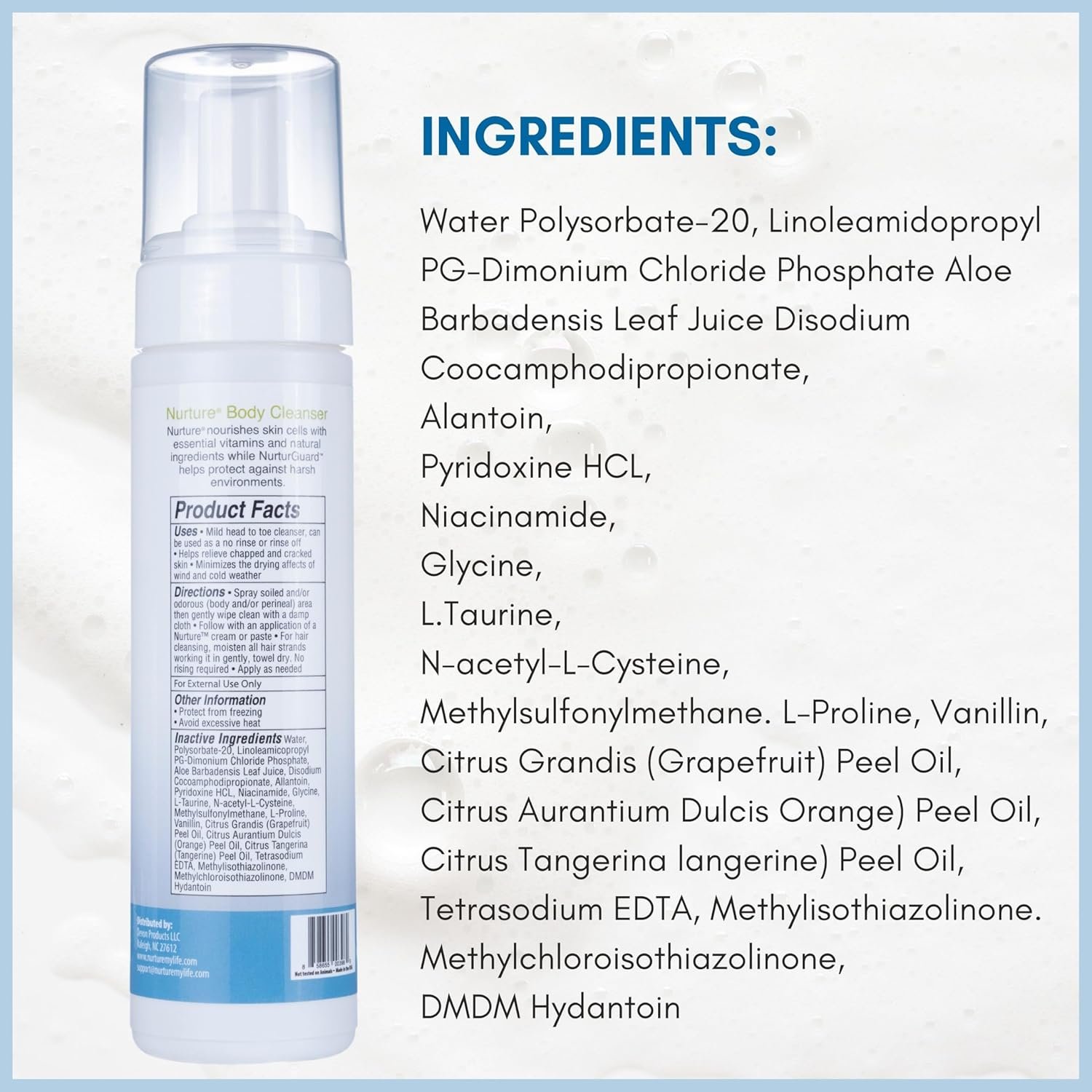 Nurture Valley’s Waterless Foaming Cleanser: This innovative cleanser provides a water-free bathing experience, ideal for adults who need a gentle yet effective cleansing solution. Infused with Aloe Vera and a blend of skin-nourishing natural ingredients, it offers a convenient, soothing, and hydrating option for those unable to access traditional water baths or showers, ensuring a clean and refreshing feel every time.