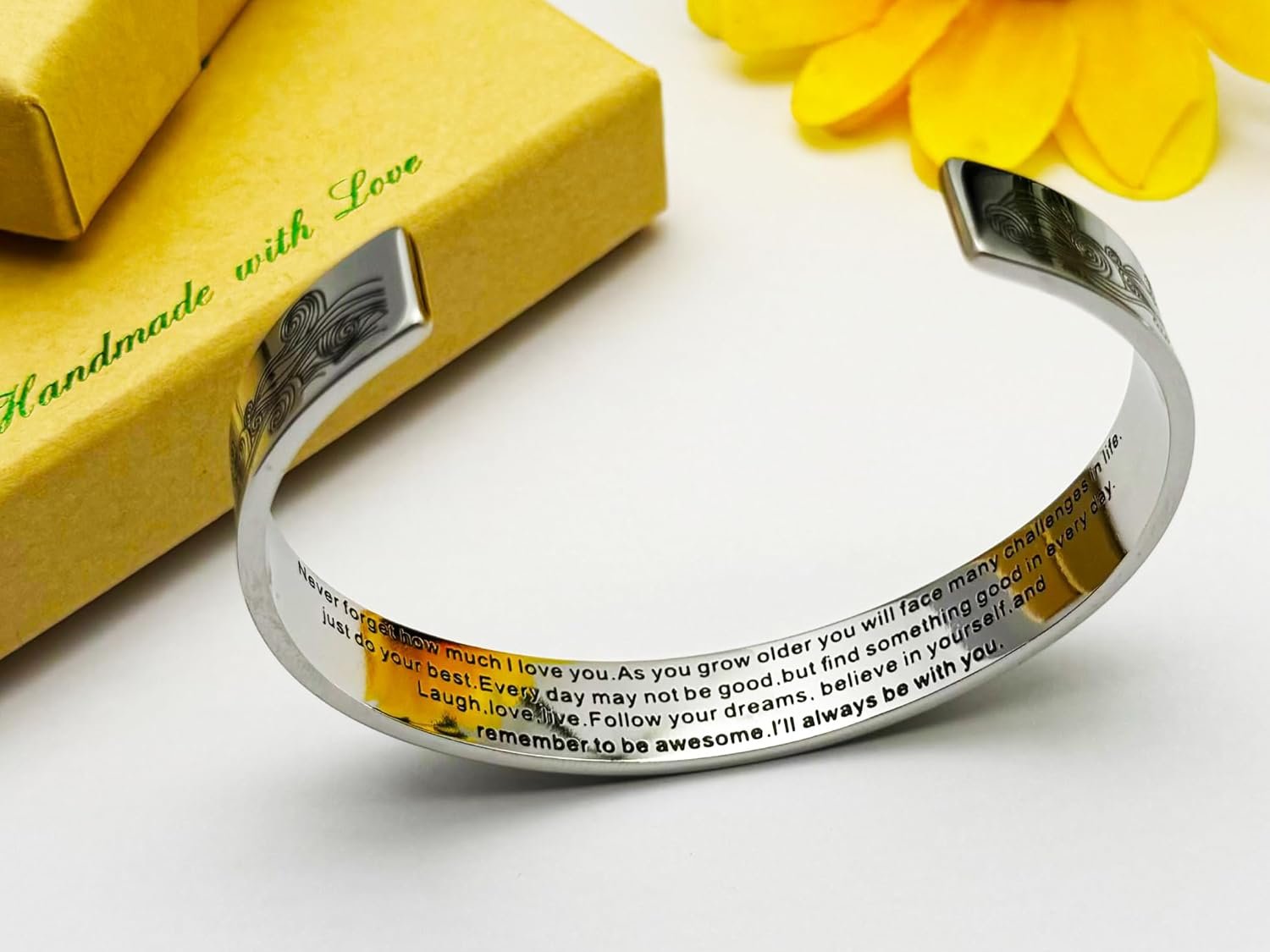 This inspirational bracelet carries the important hidden message inside, a heartfelt reminder she’ll treasure every time she wears it.Simple bracelet but with full all the meaning!